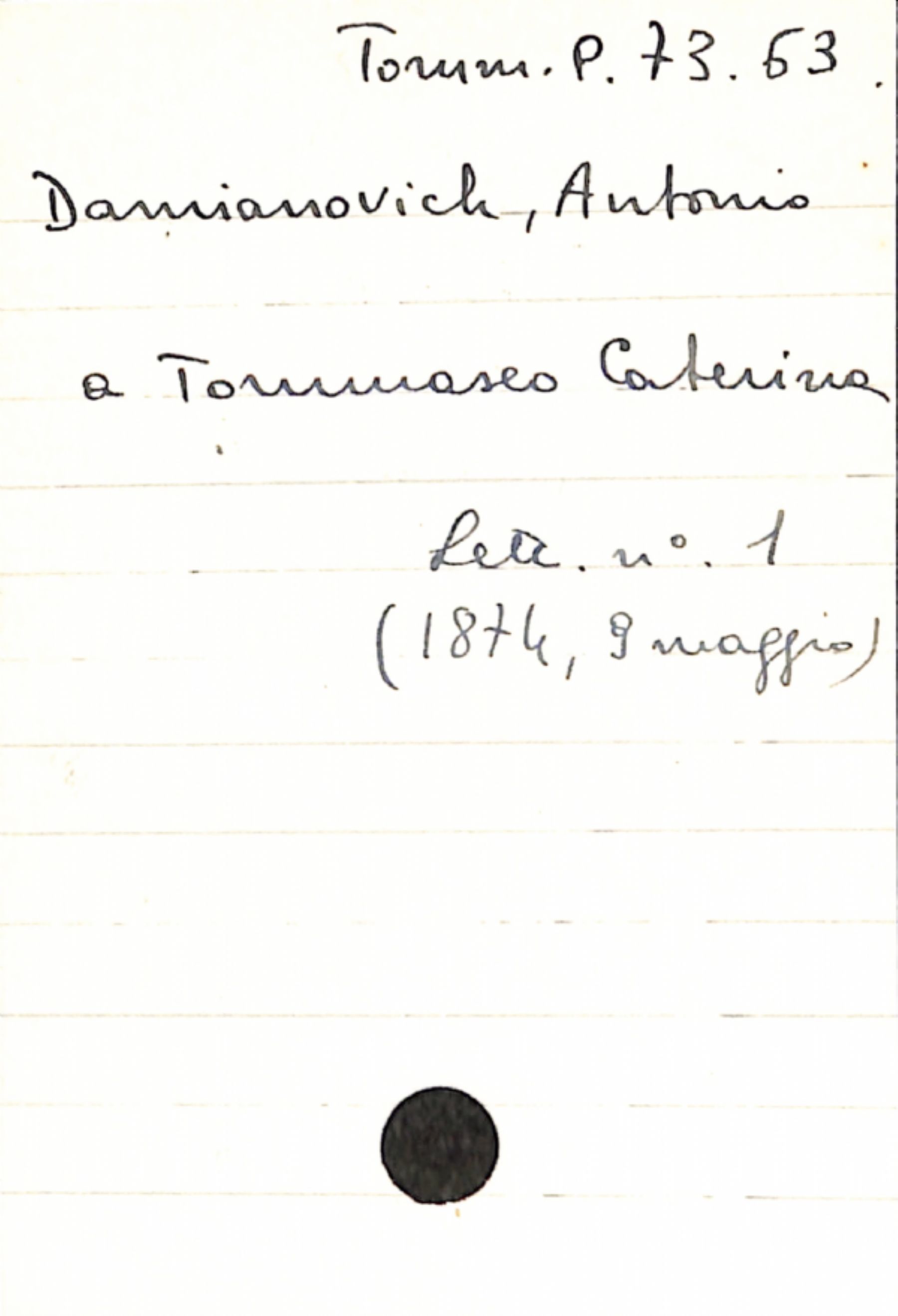 • Damianovich, Antonio a Tommaseo, Caterina