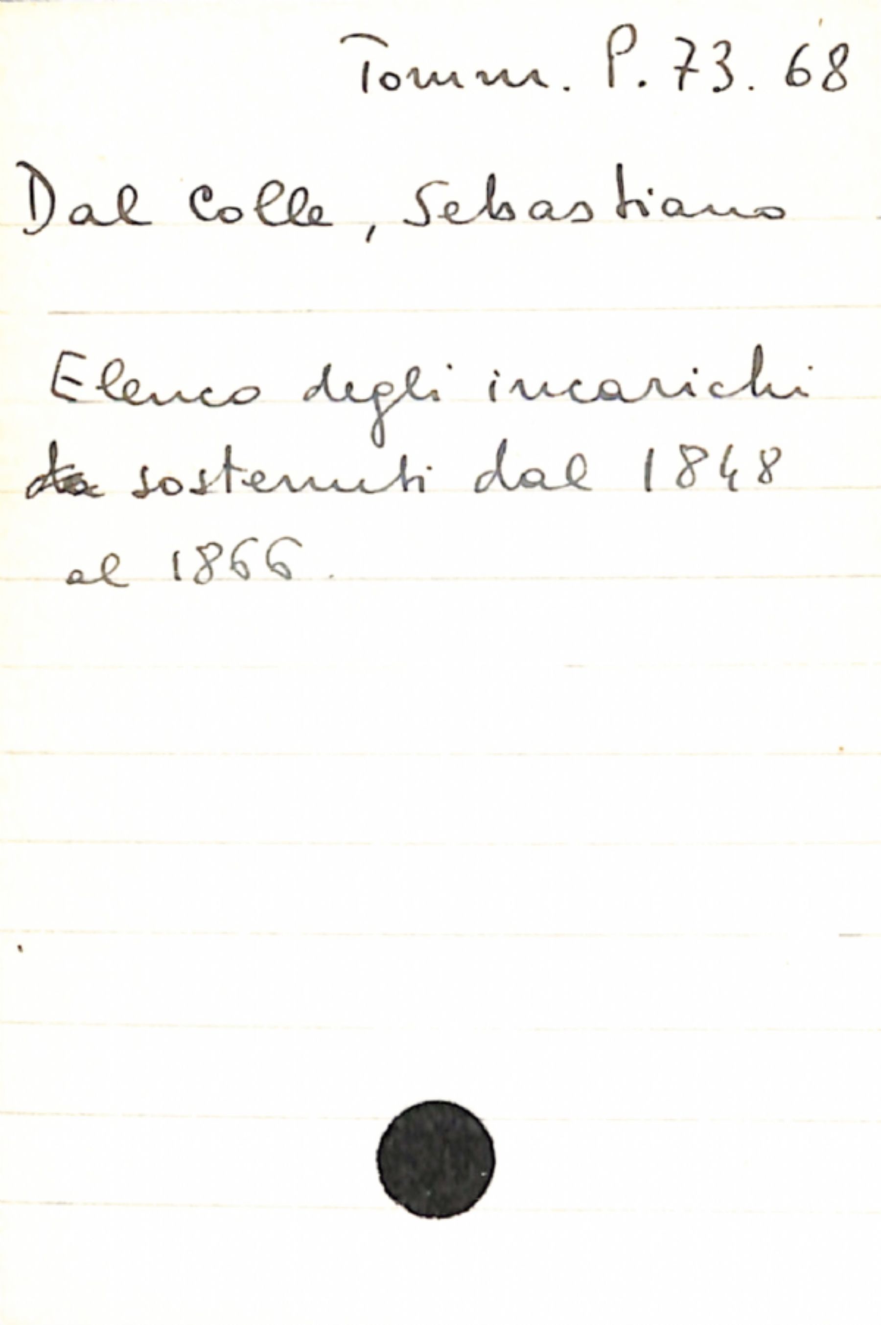 • Dal Colle, Sebastiano a [senza destinatario]