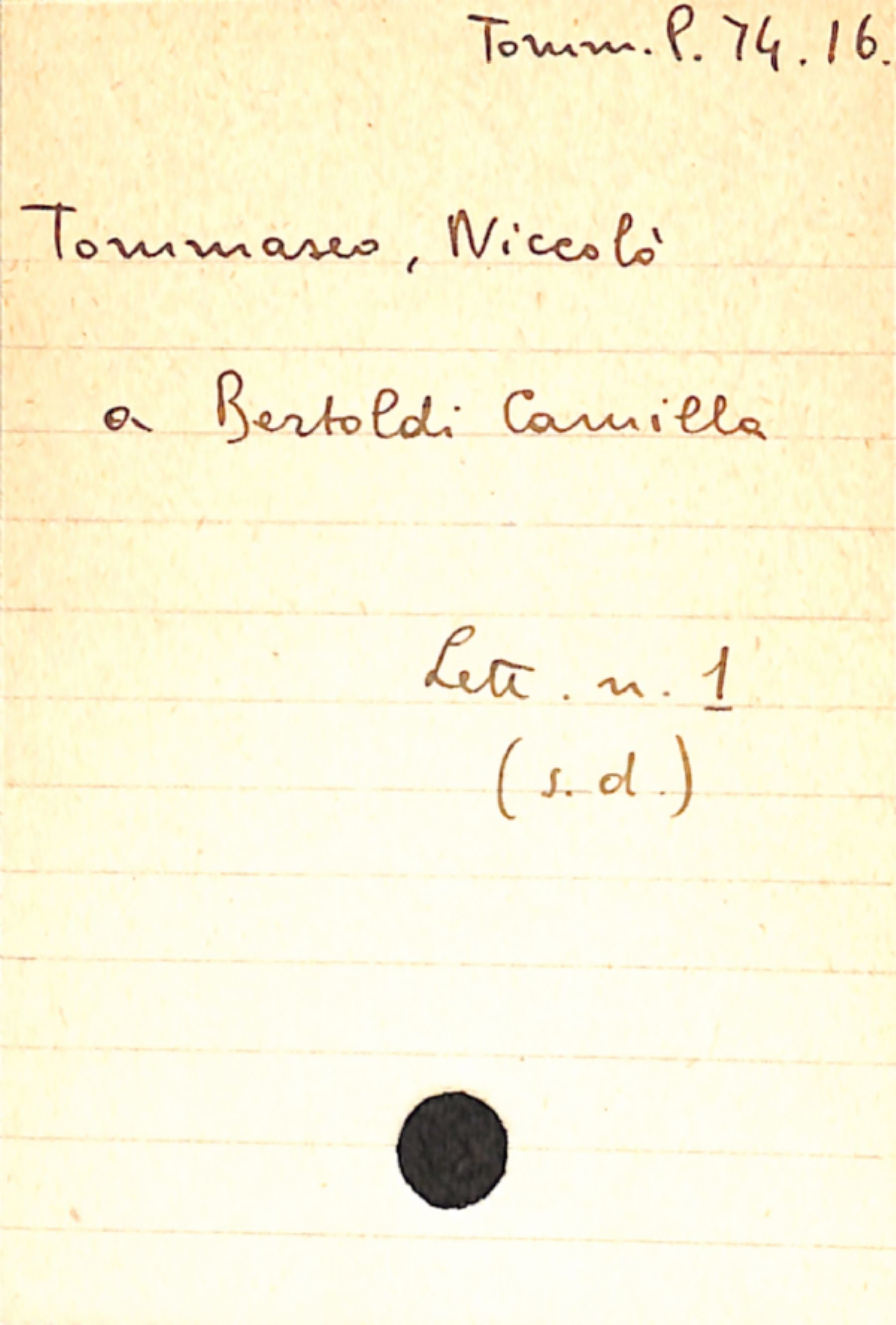 • Tommaseo, Niccolò a Bertoldi, Camilla
