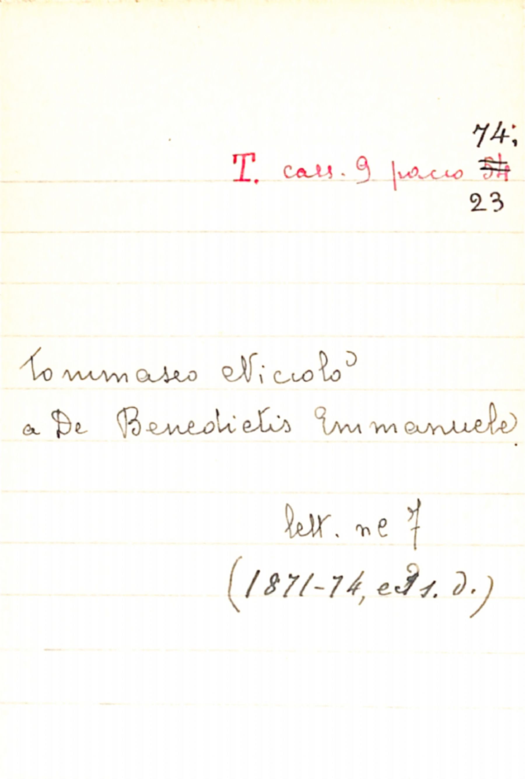 Fascicolo Tommaseo, Niccolò a De Benedictis, Emmanuele