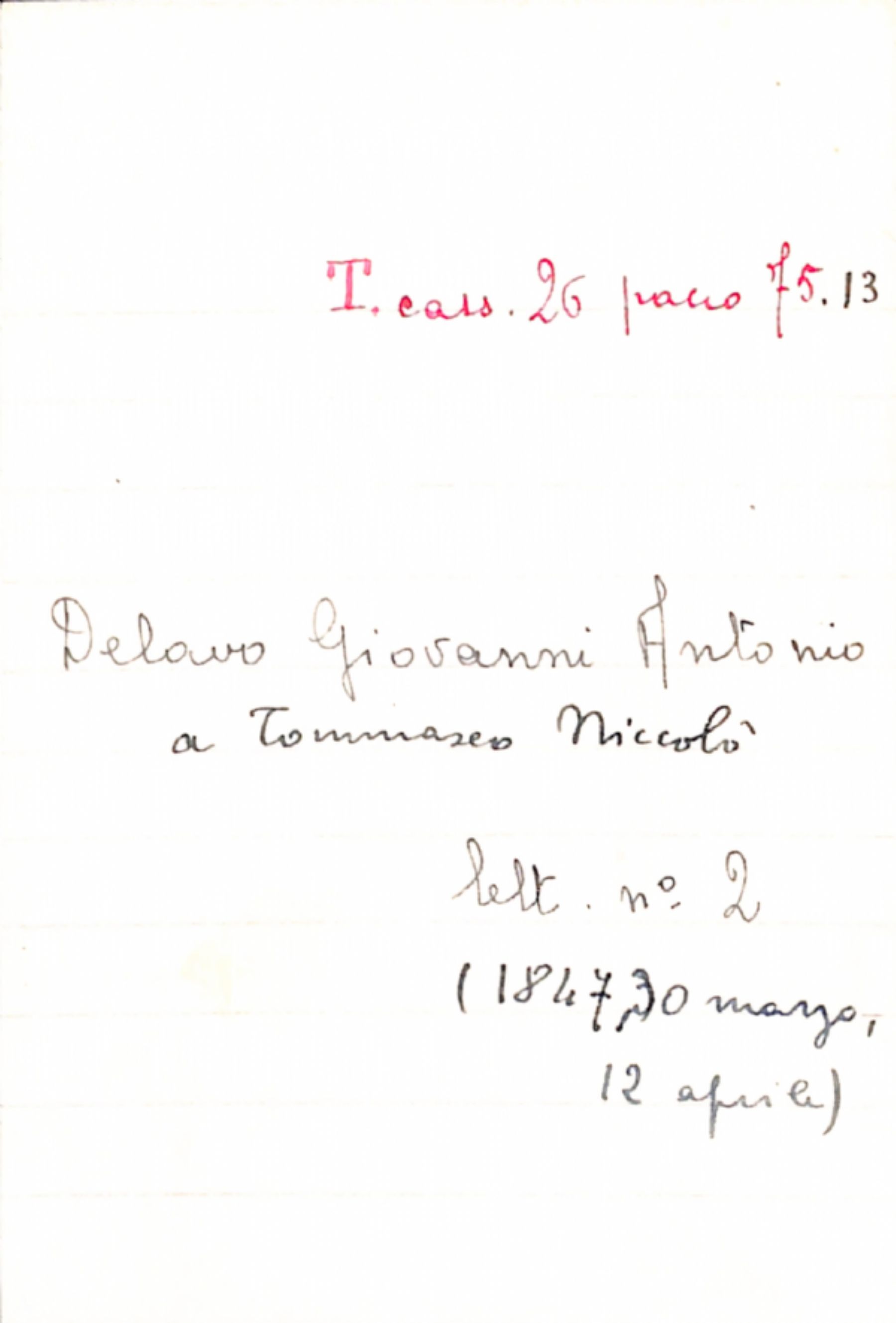 Fascicolo Delavo, Giovanni Antonio a Tommaseo, Niccolò