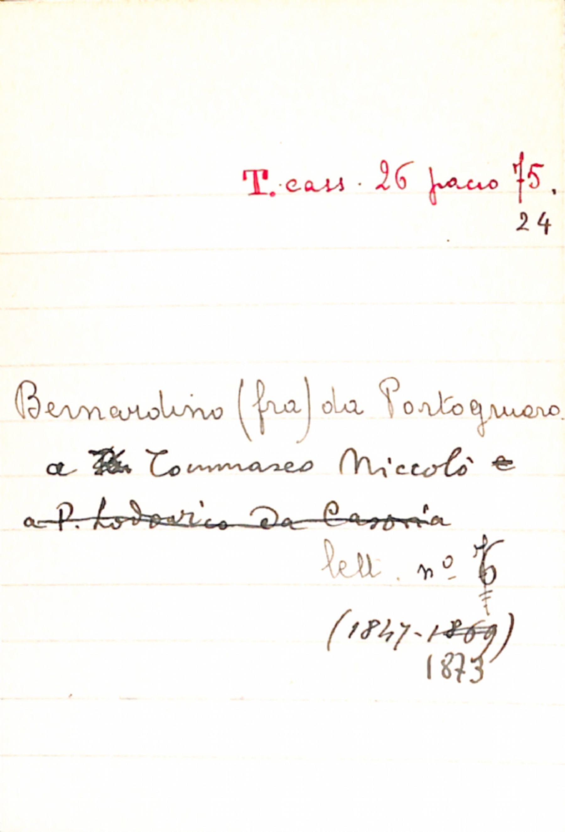 Fascicolo da Portogruaro, Bernardino, frate a Tommaseo, Niccolò
