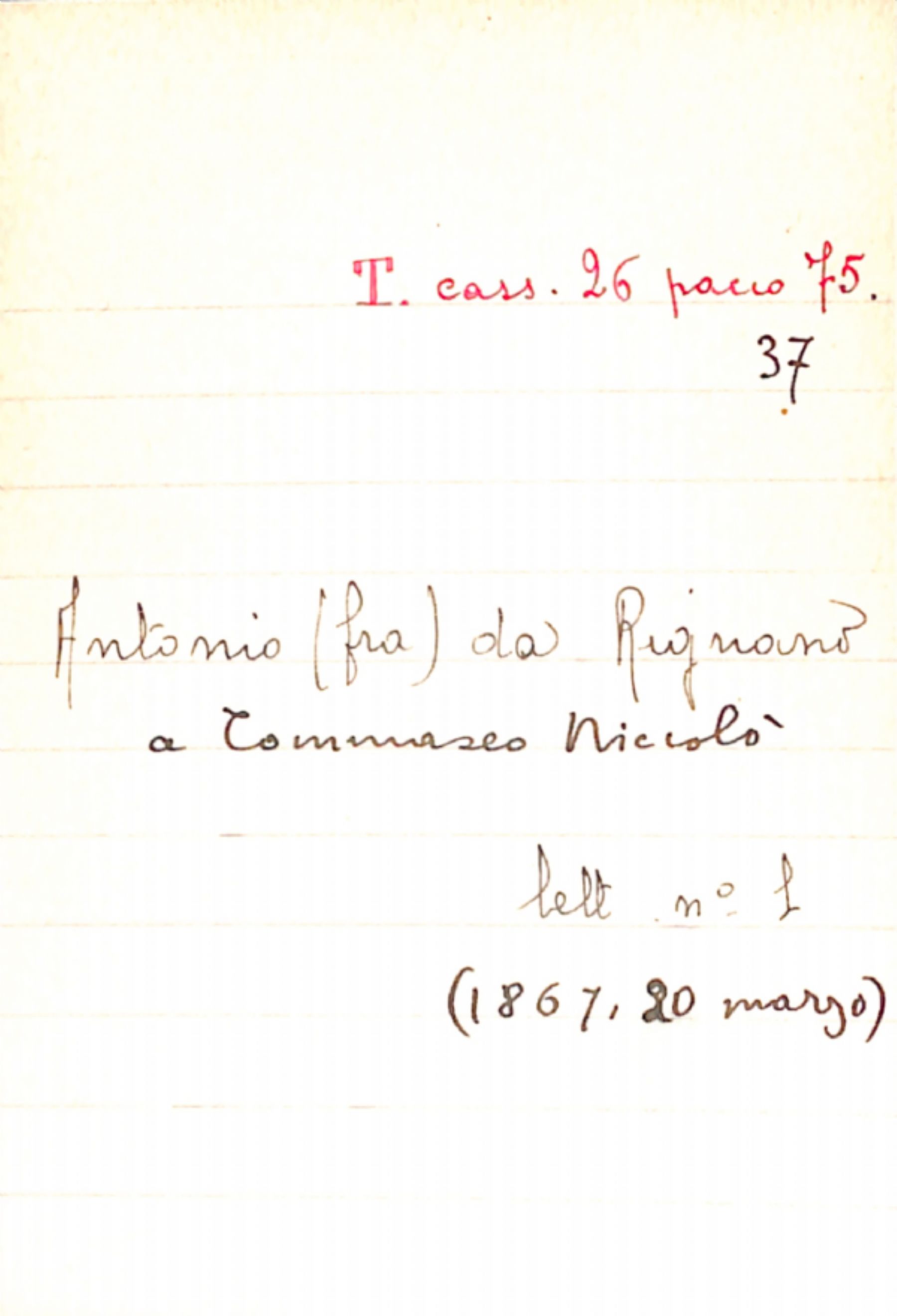 Fascicolo da Rignano, Antonio, frate a Tommaseo, Niccolò
