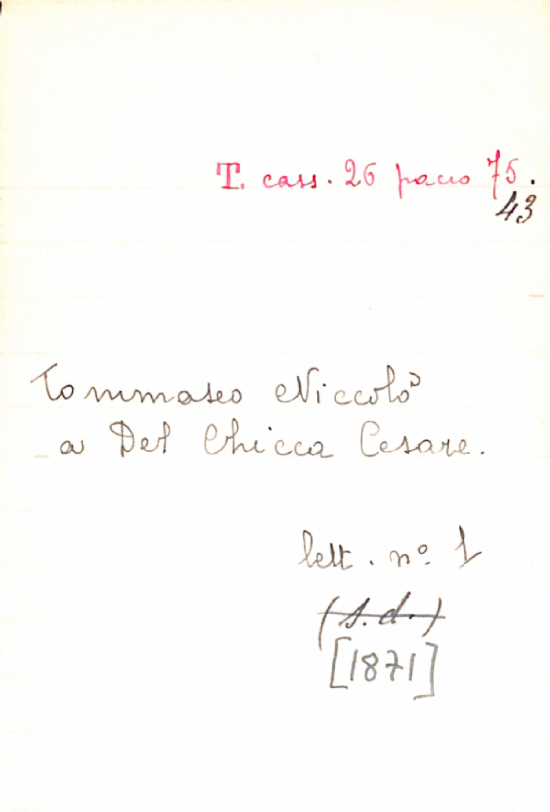 Fascicolo Tommaseo, Niccolò a Del Chicca, Cesare