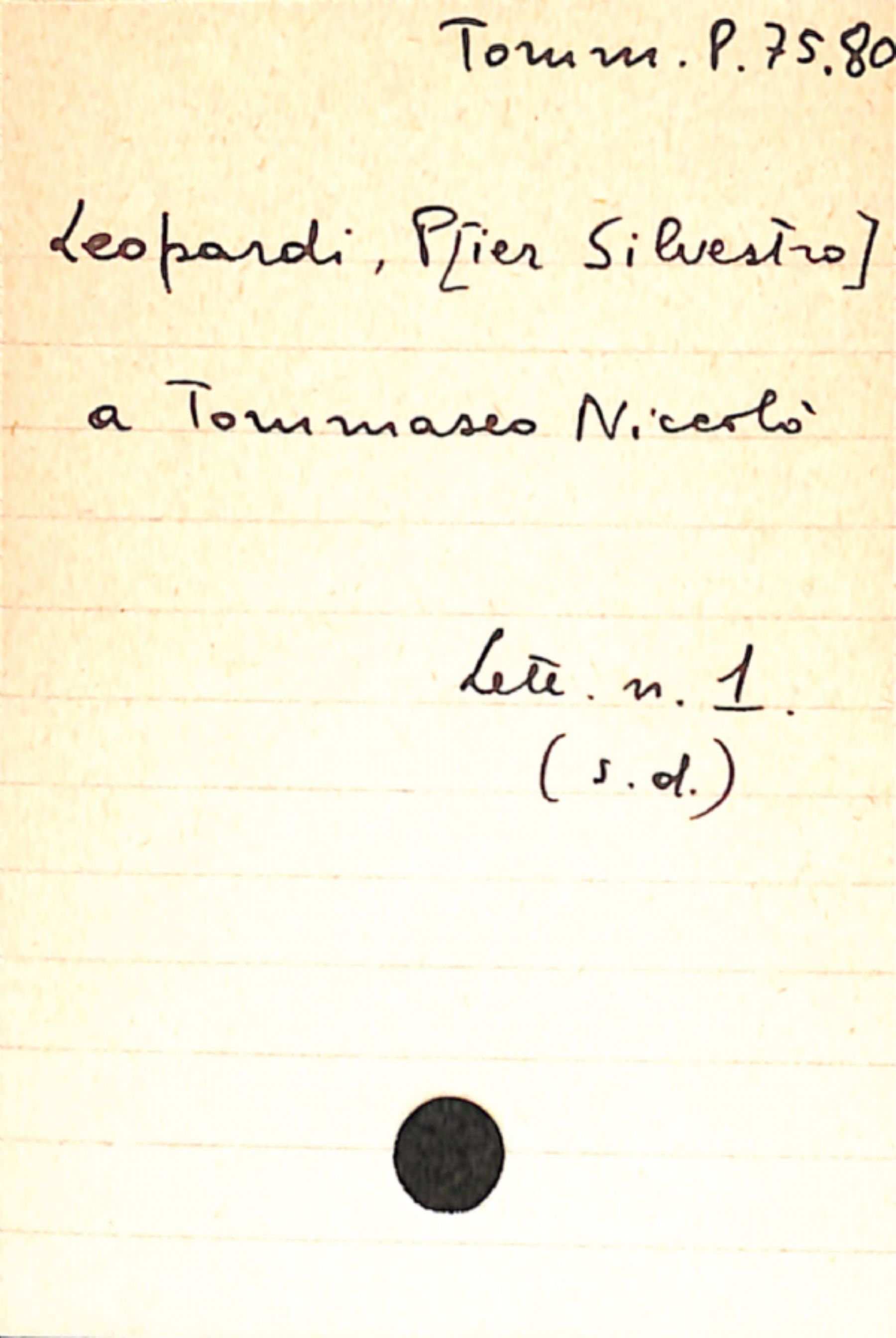 • Leopardi, P[ier Silvestro] a Tommaseo, Niccolò