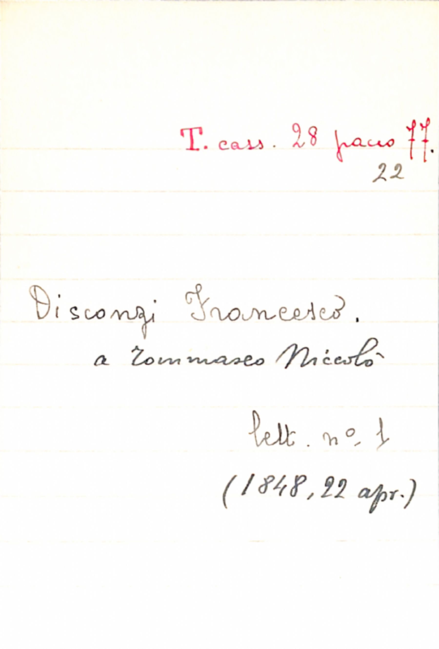 Fascicolo Disconzi, Francesco a Tommaseo, Niccolò