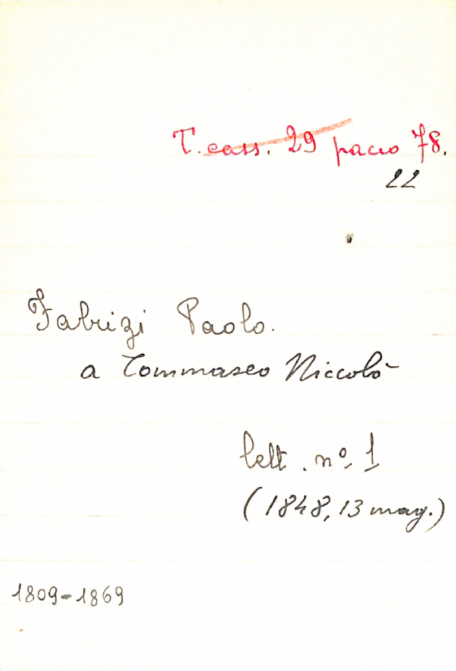 Fascicolo Fabrizi, Paolo a Tommaseo, Niccolò