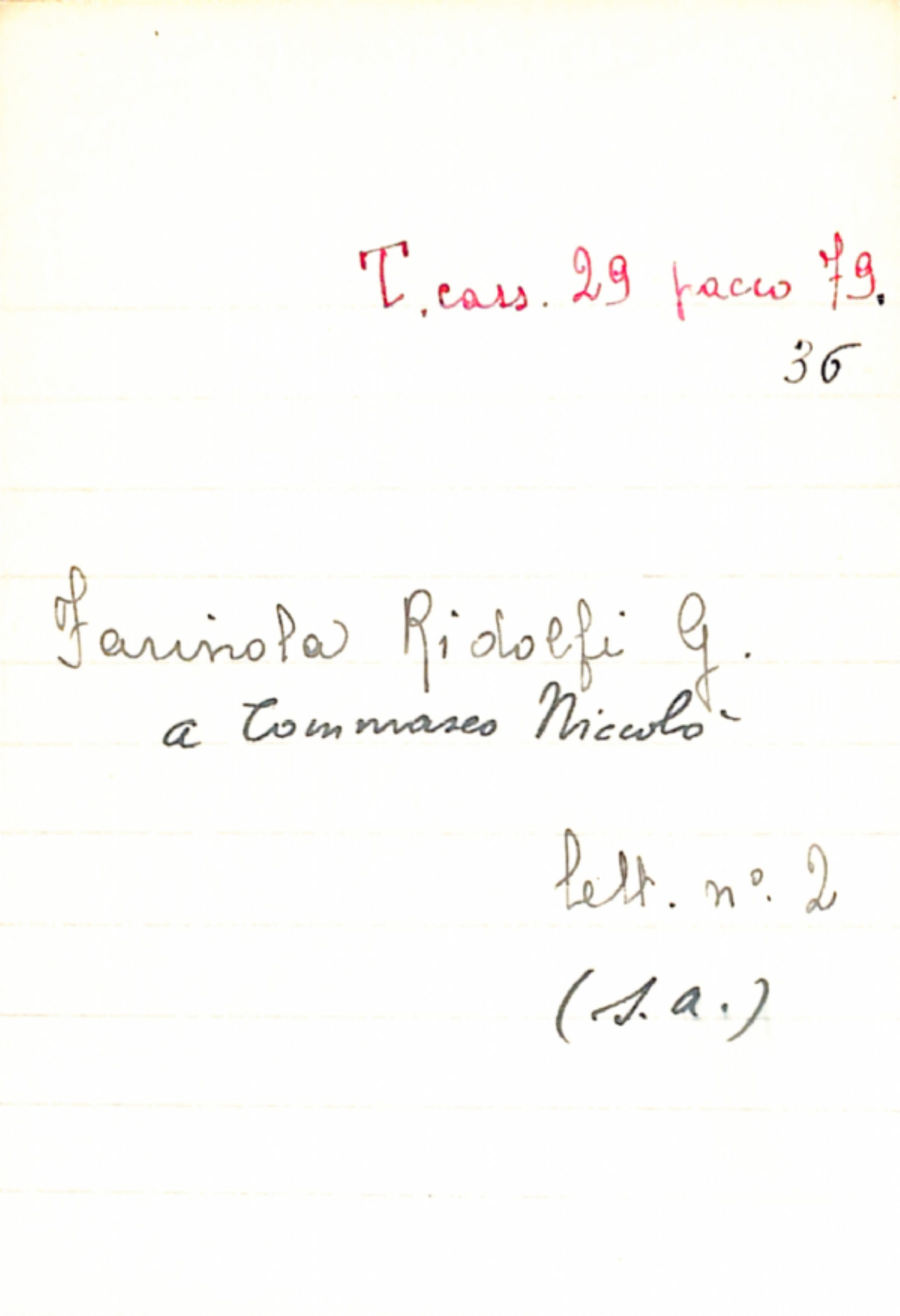 Fascicolo Farinola Ridolfi, G. a Tommaseo, Niccolò