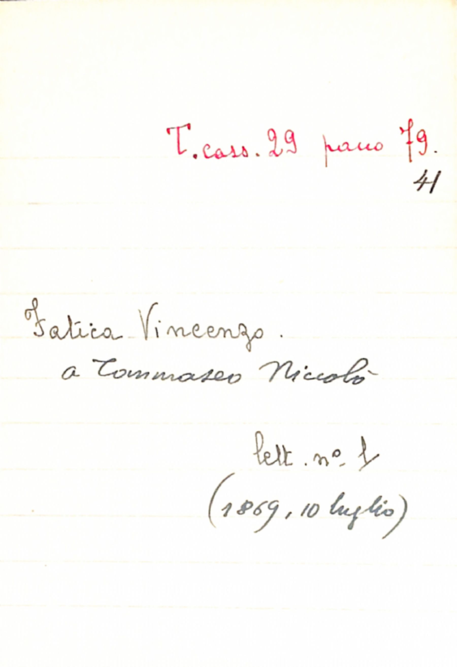 Fascicolo Fatica, Vincenzo a Tommaseo, Niccolò