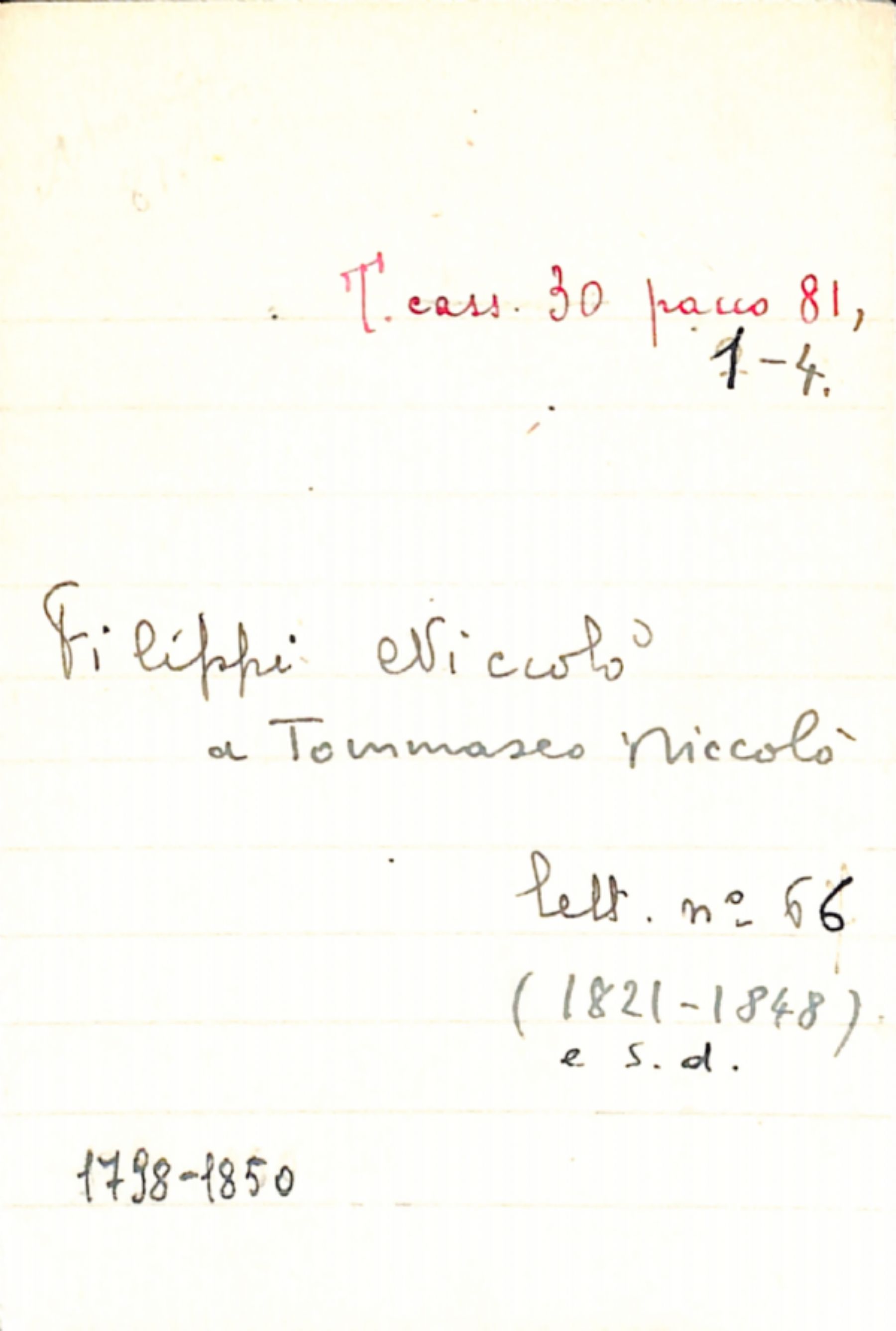 Fascicolo Filippi, Niccolò a Tommaseo, Niccolò