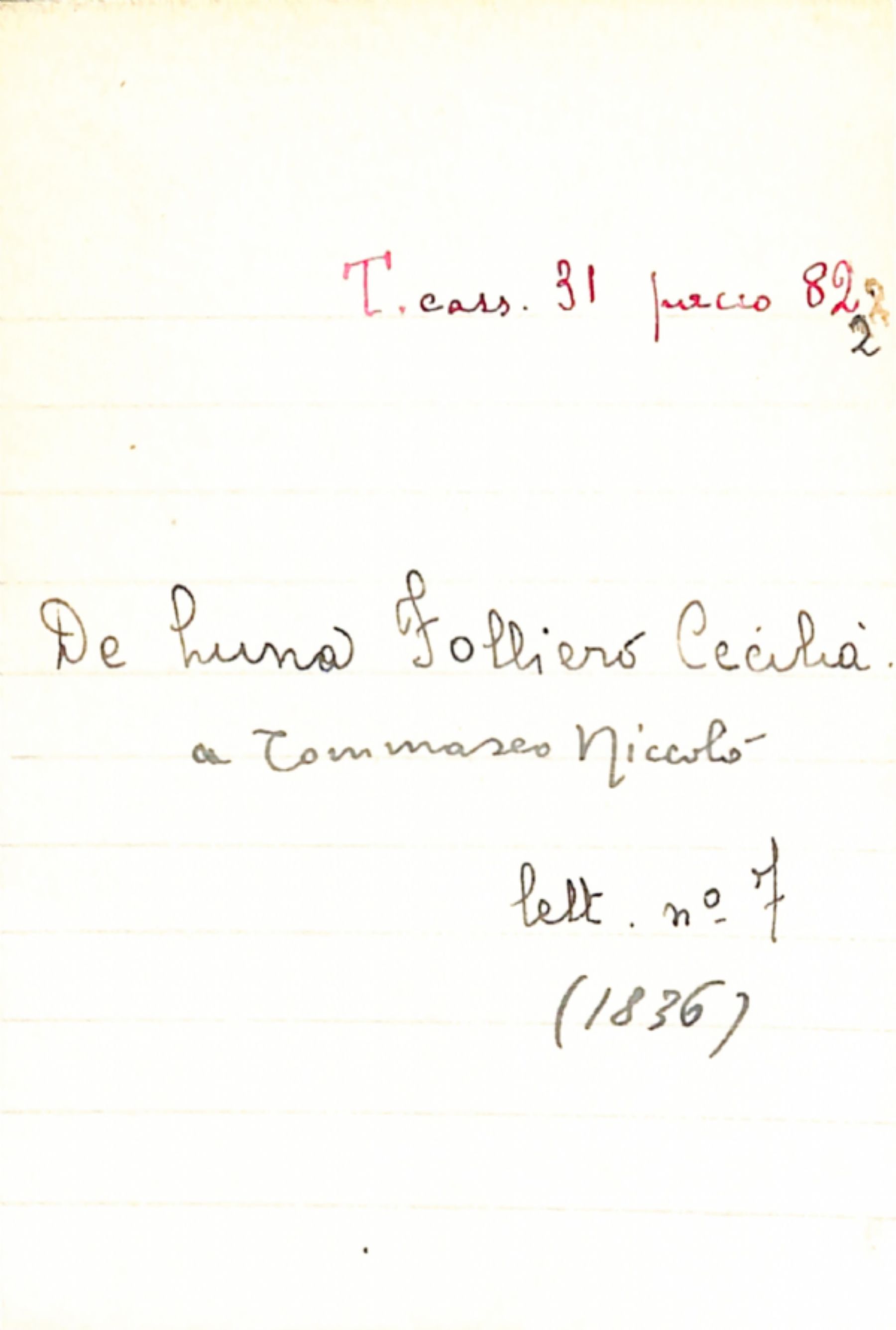Fascicolo De Luna Folliero, Cecilia a Tommaseo, Niccolò
