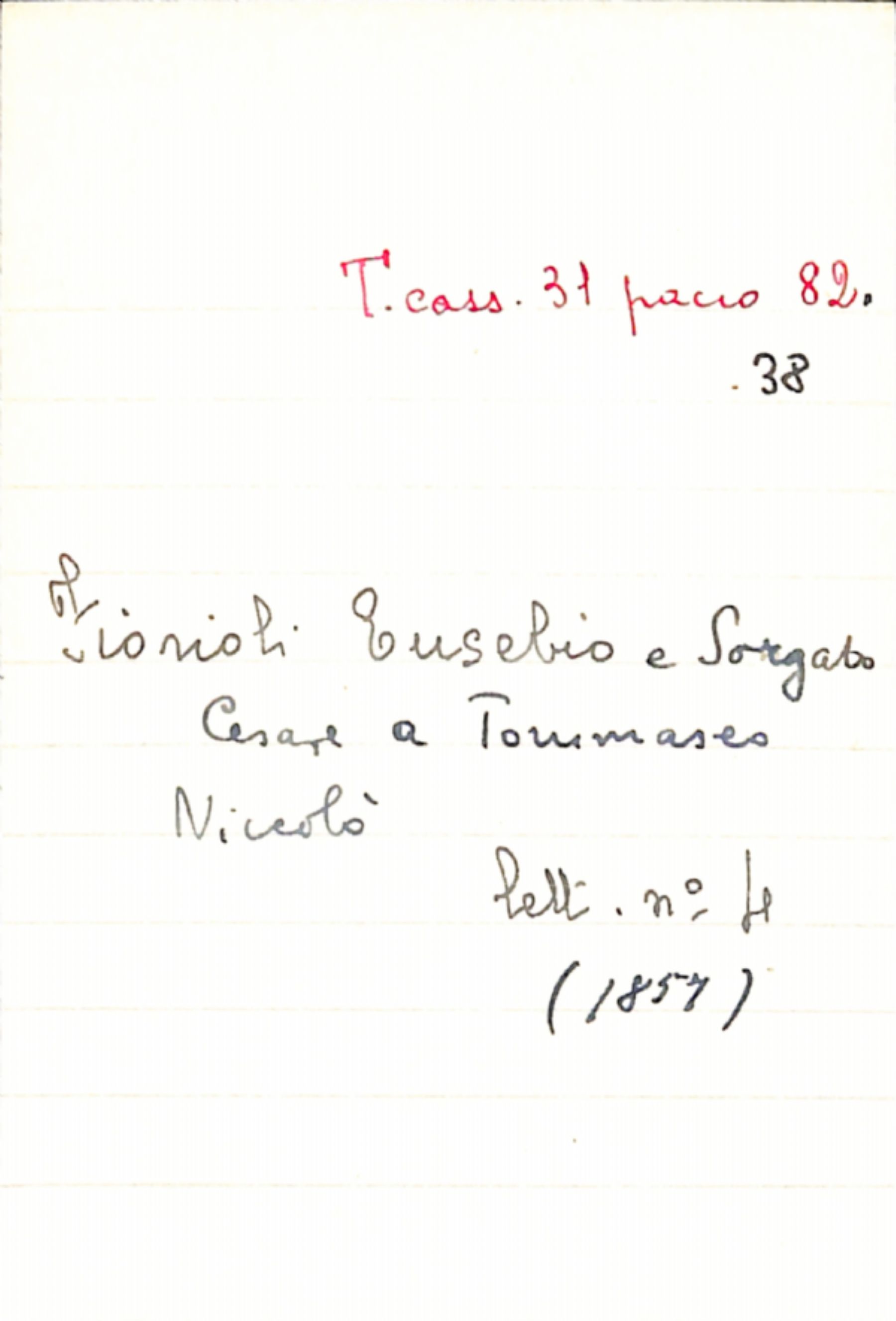 Fascicolo Fiorioli, Eusebio; Sorgato, Cesare a Tommaseo, Niccolò
