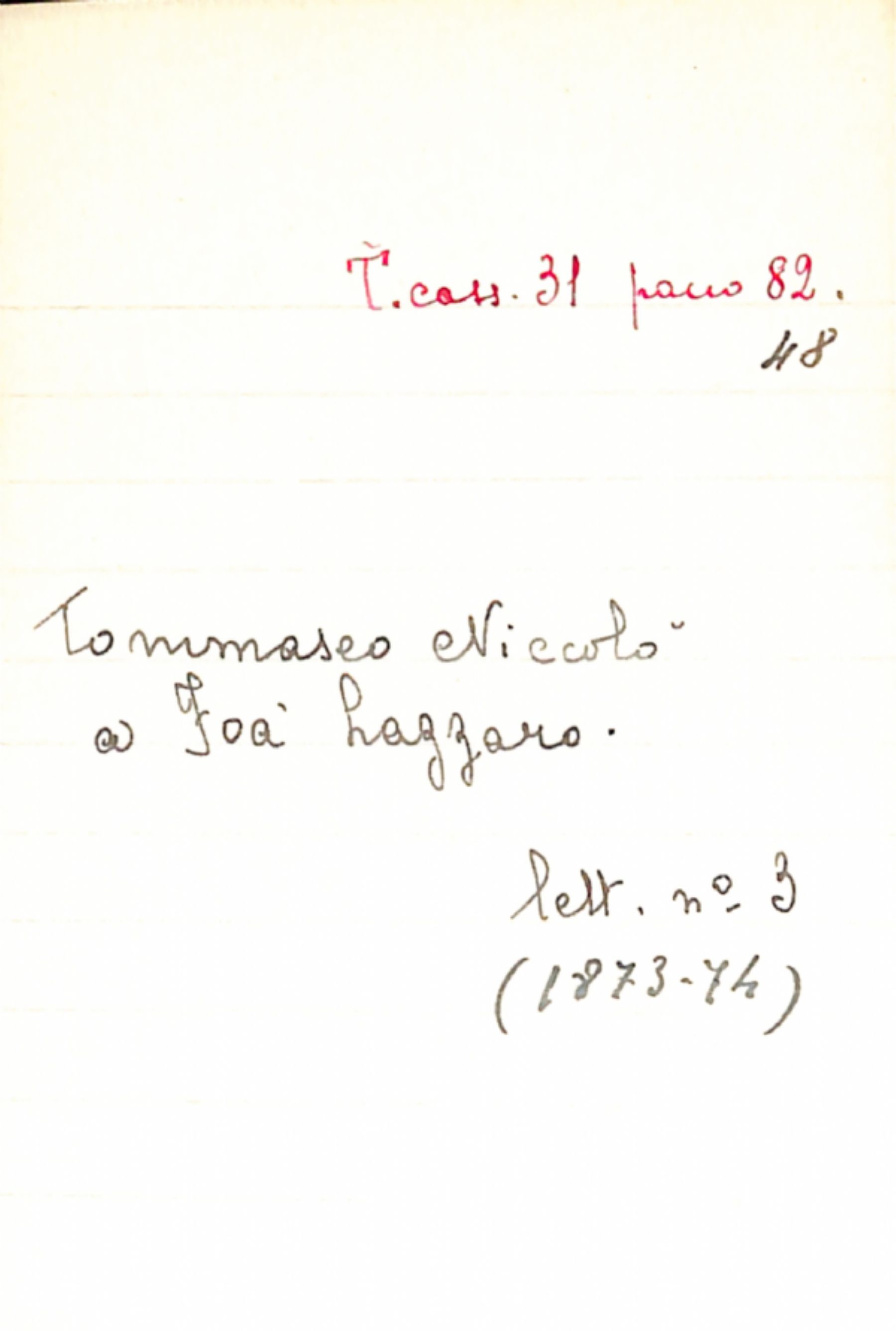 Fascicolo Tommaseo, Niccolò a Foà, Lazzaro