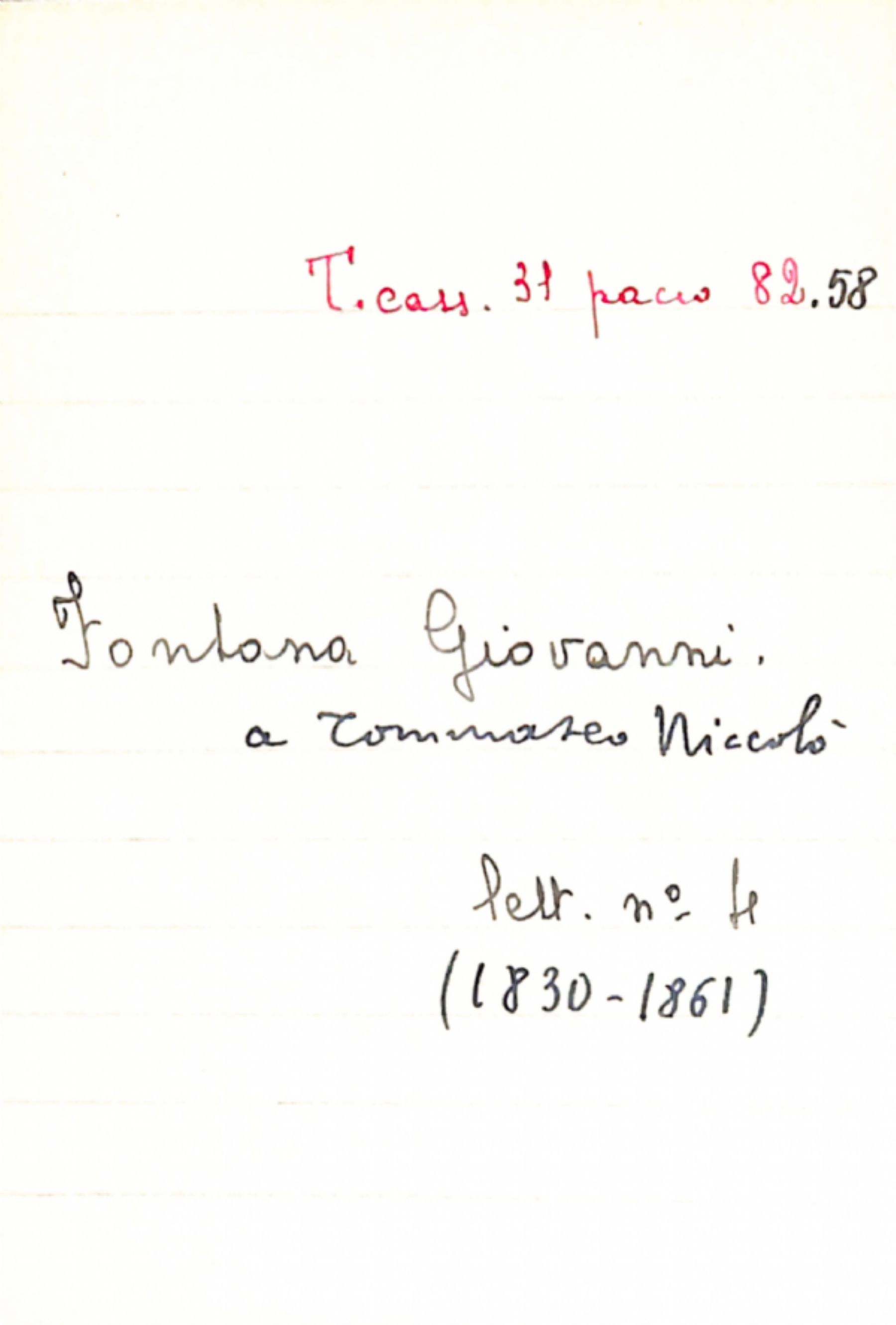 Fascicolo Fontana, Giovanni a Tommaseo, Niccolò