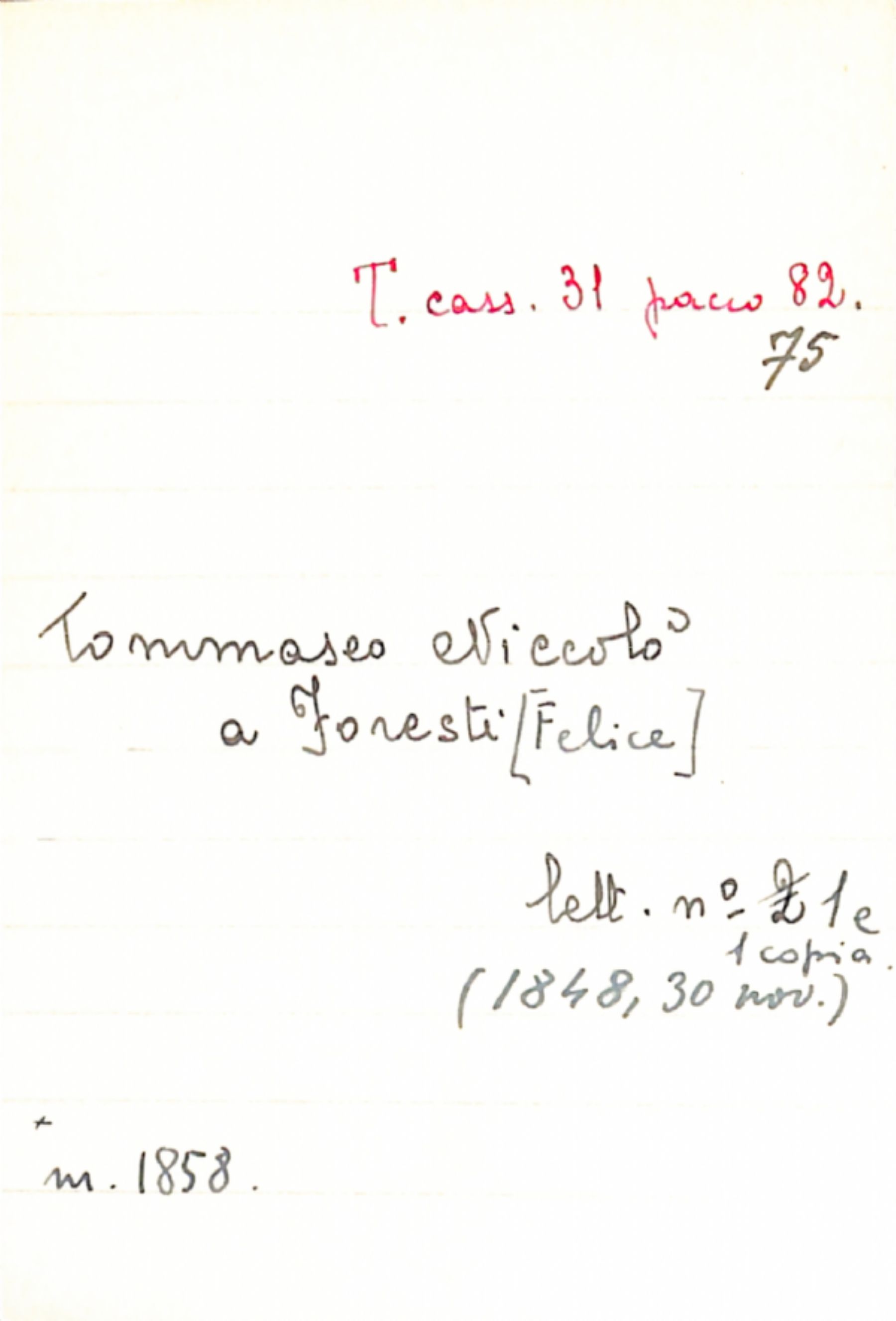 Fascicolo Tommaseo, Niccolò a Foresti, [Felice]
