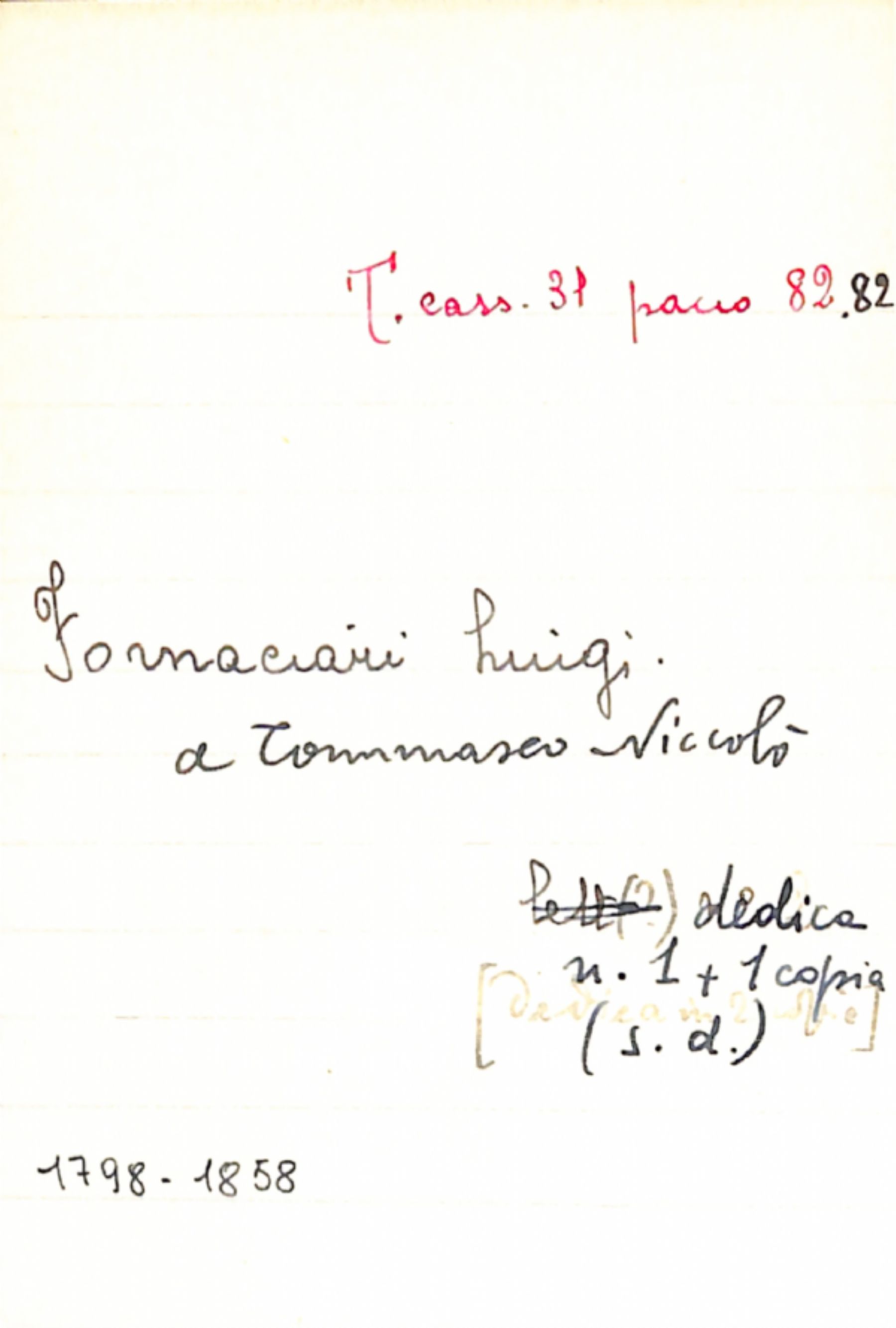 Fascicolo Fornaciari, Luigi a Tommaseo, Niccolò