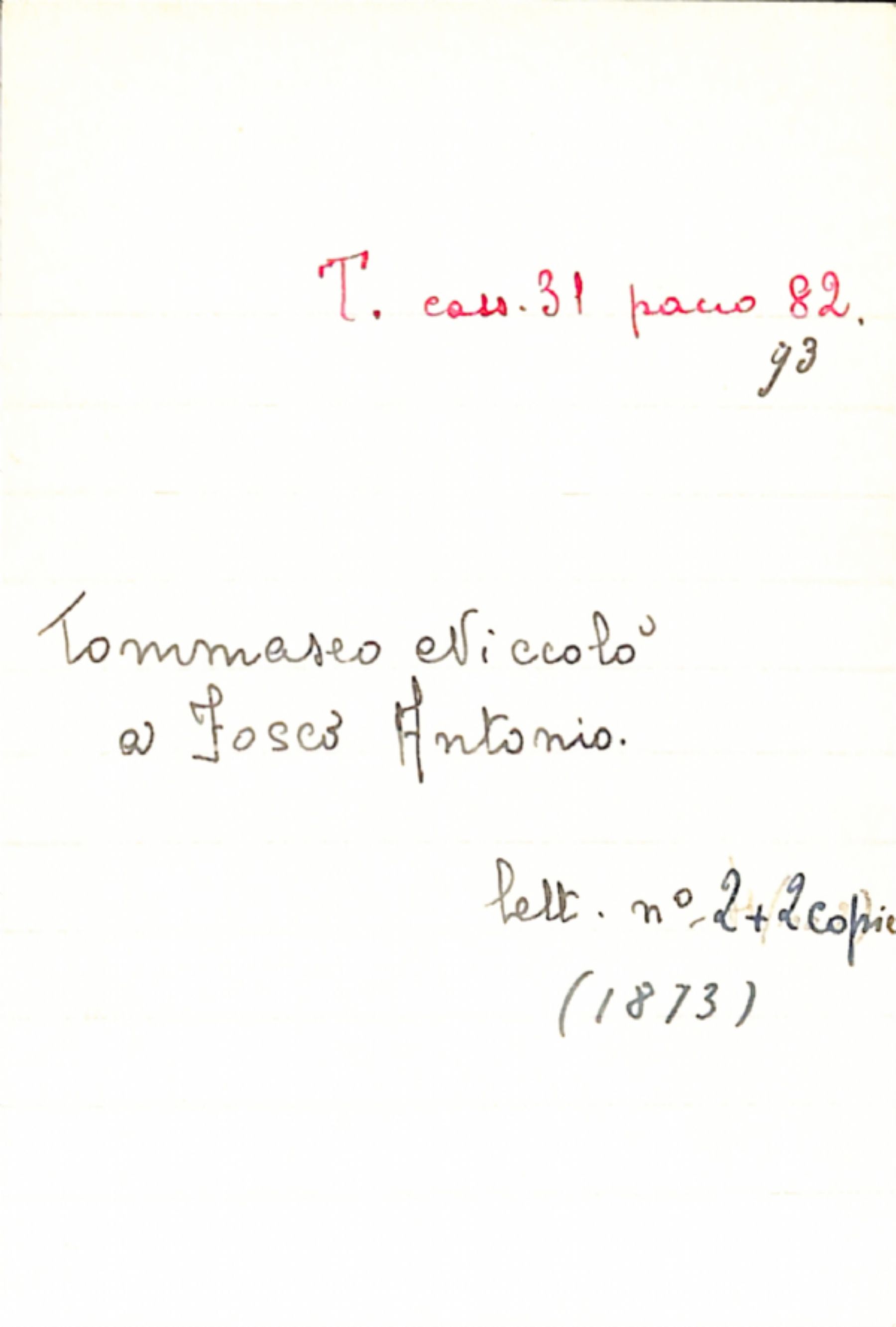 Fascicolo Tommaseo, Niccolò a Fosco, Antonio