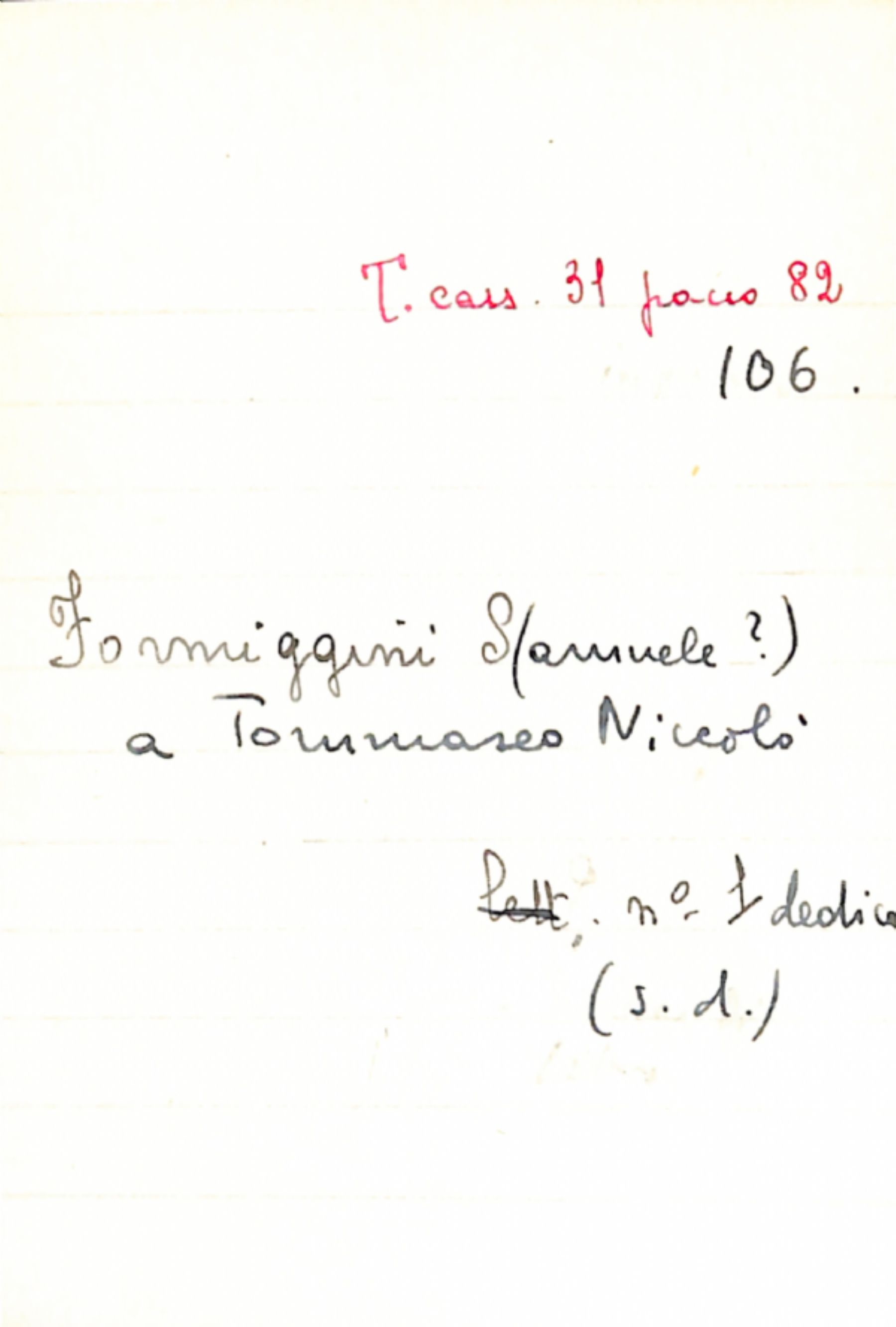 Fascicolo Formiggini, S(amuele?) a Tommaseo, Niccolò