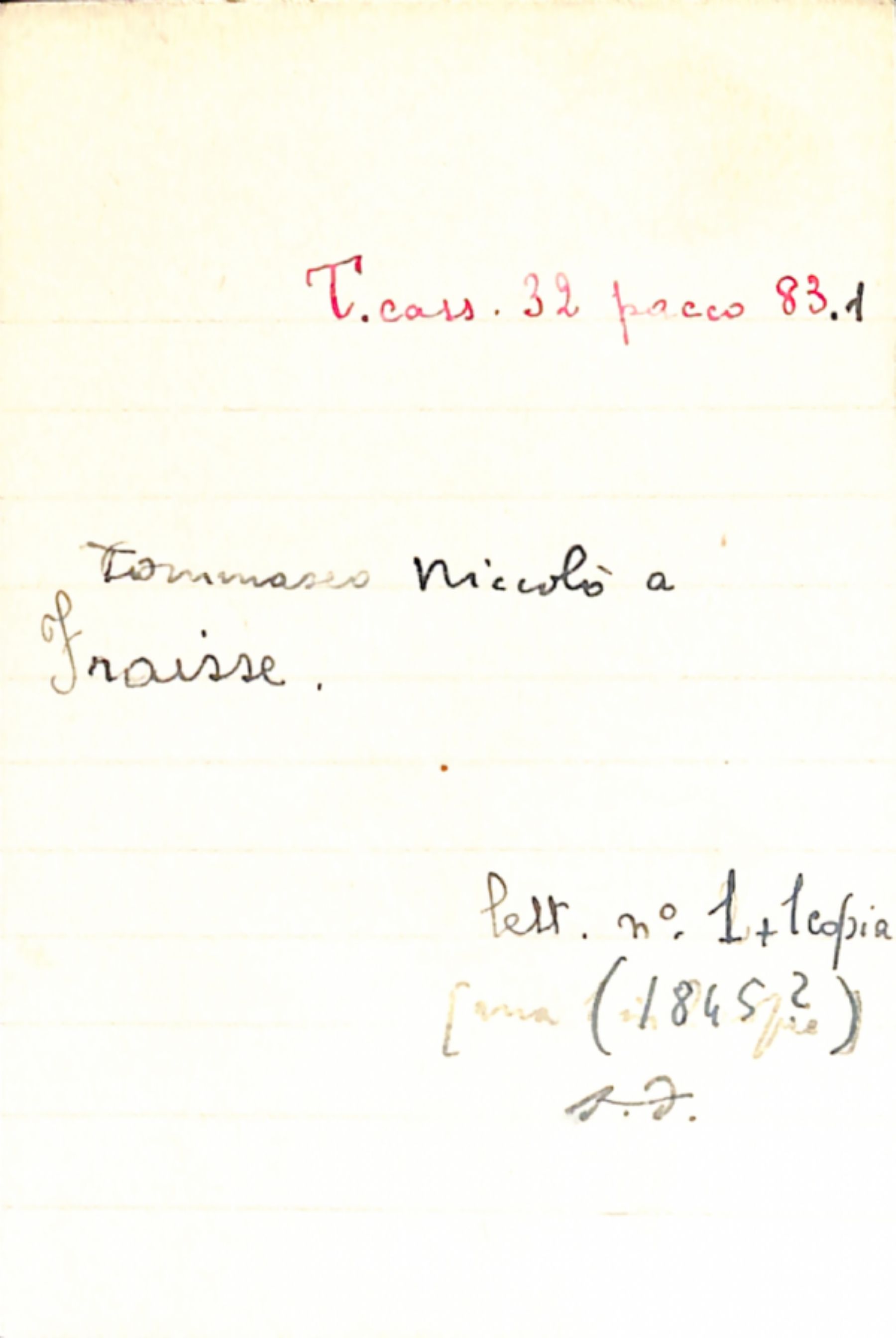 Fascicolo Tommaseo, Niccolò a Fraisse