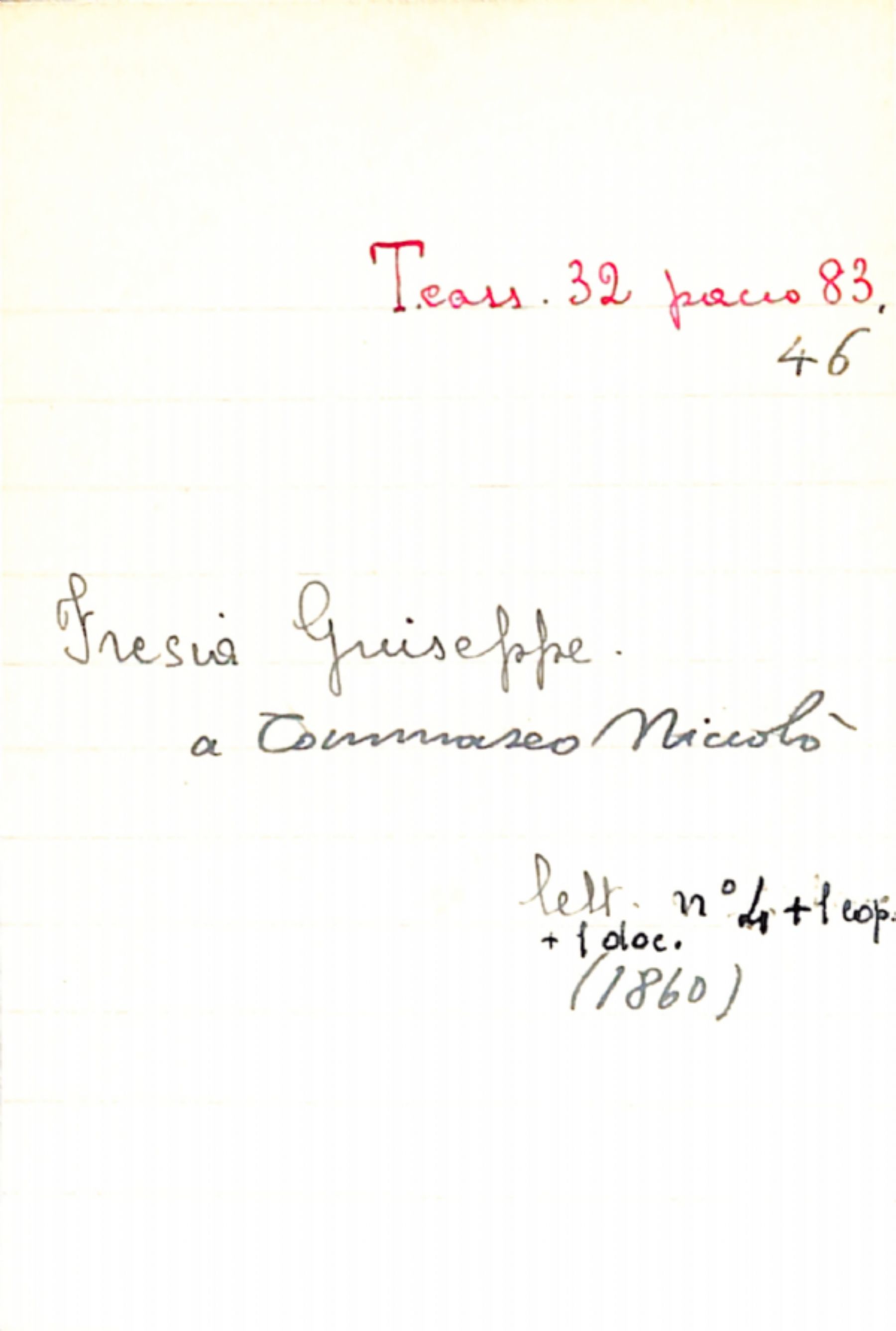 Fascicolo Fresia, Giuseppe a Tommaseo, Niccolò