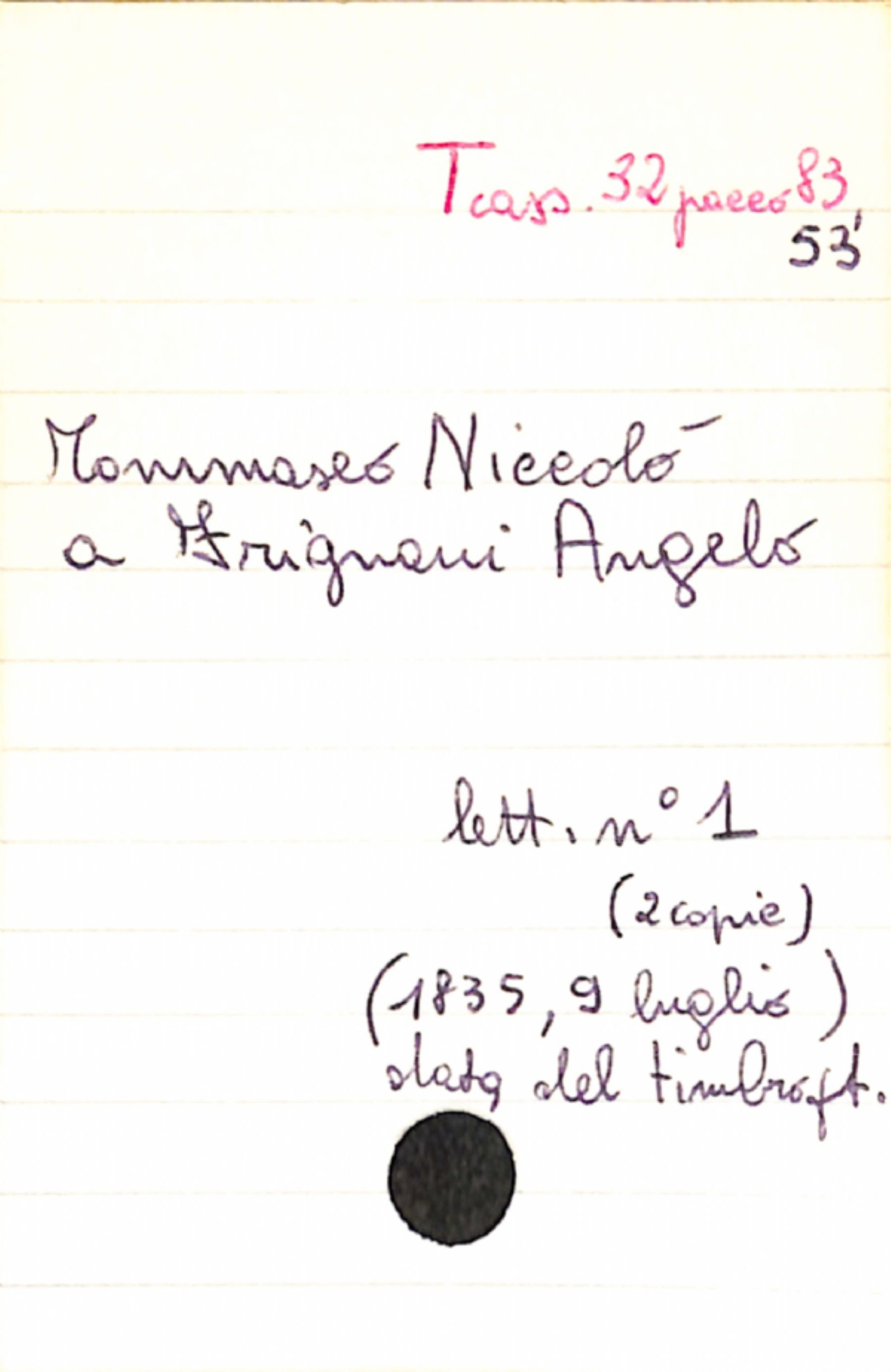 Fascicolo Tommaseo, Niccolò a Frignani, Angelo