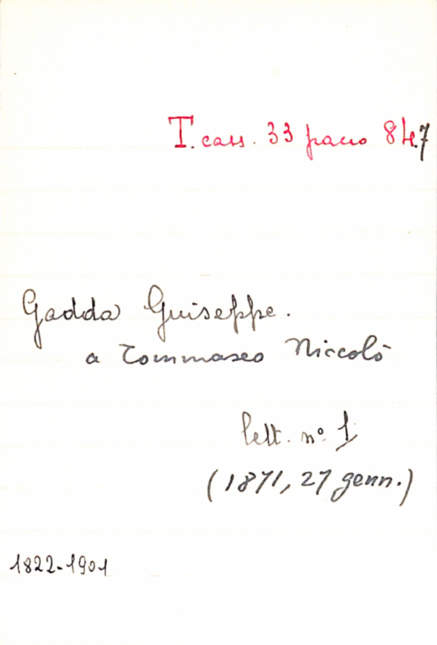 Fascicolo Gadda, Giuseppe a Tommaseo, Niccolò