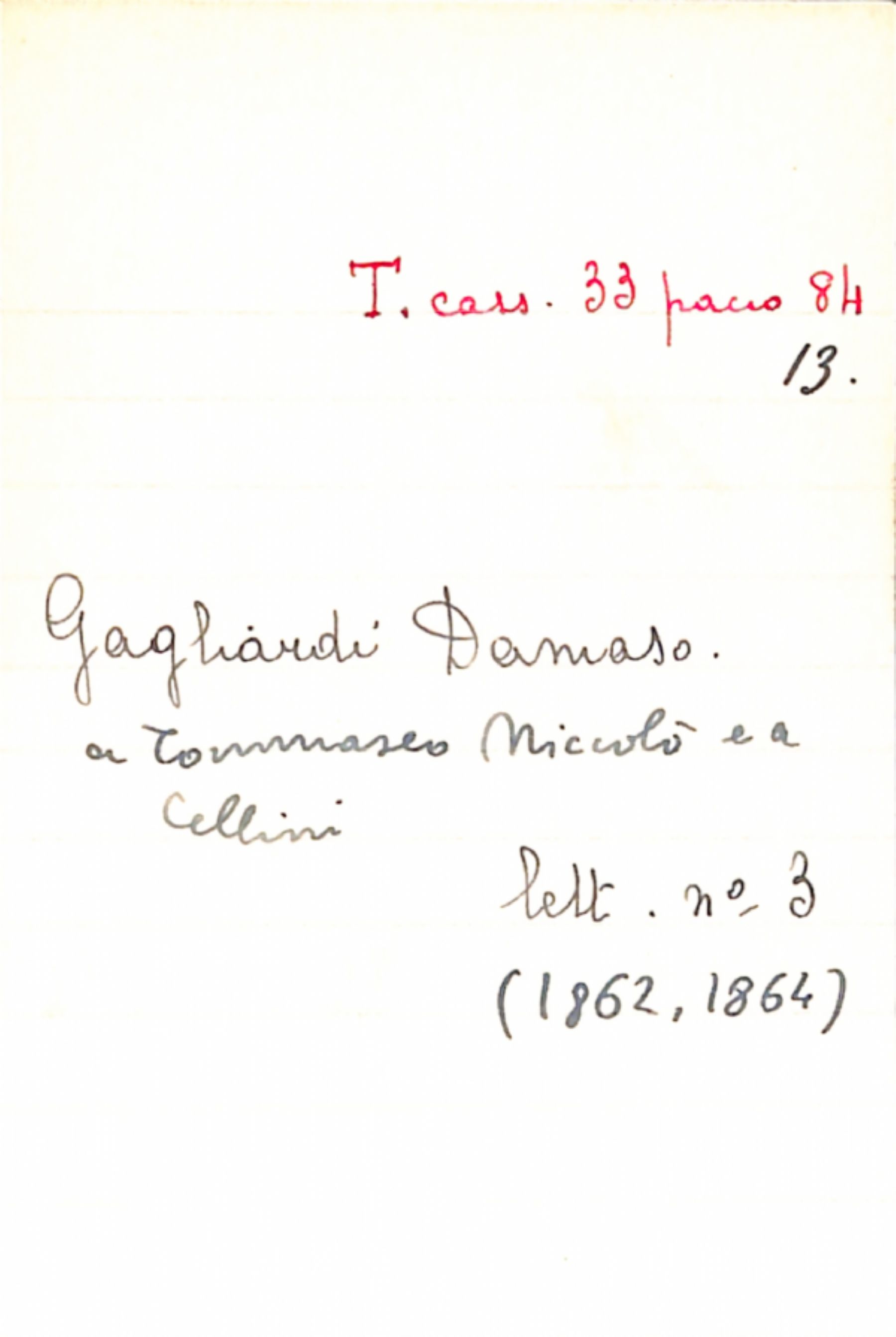 Fascicolo Gagliardi, Damaso a Tommaseo, Niccolò; Cellini