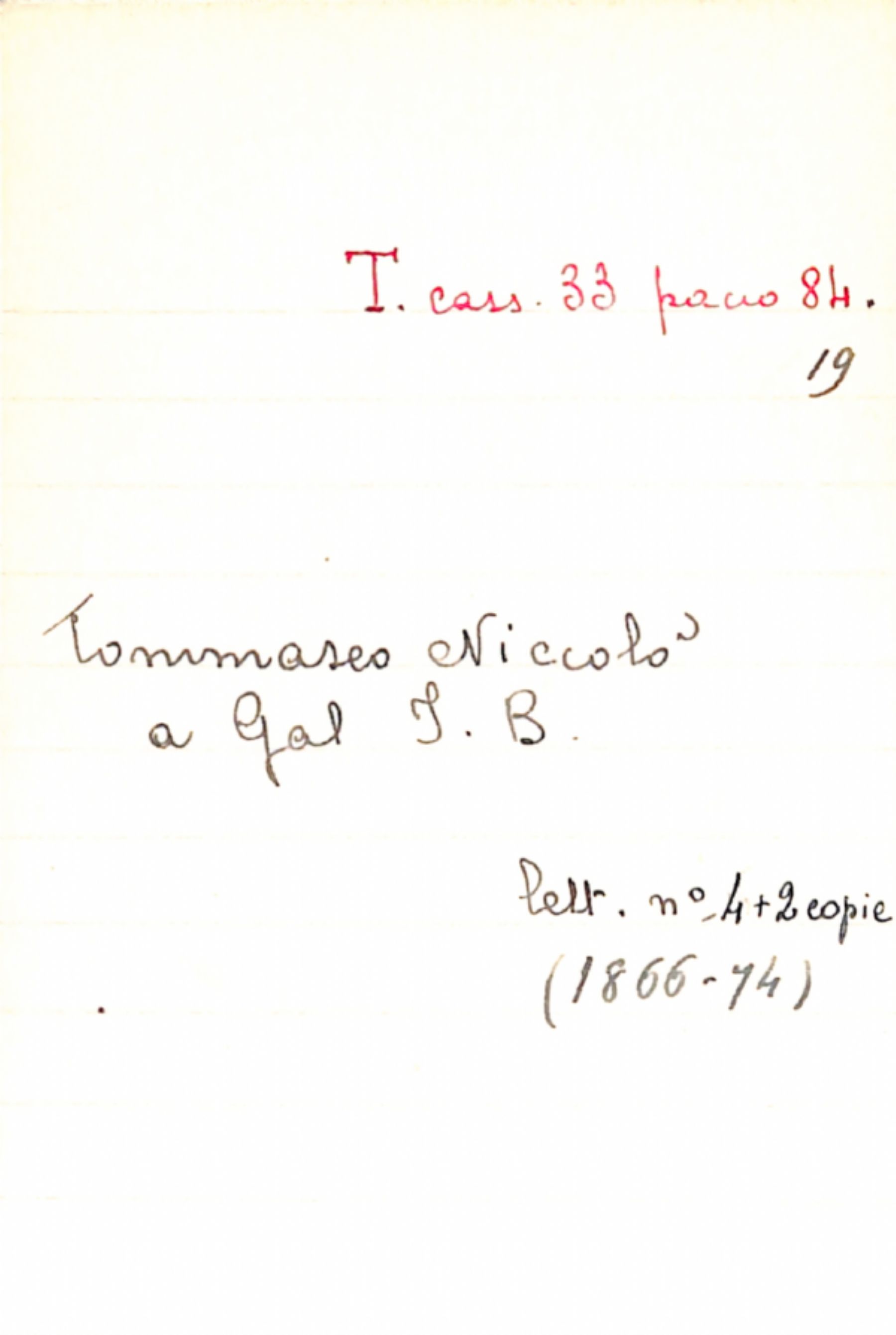 Fascicolo Tommaseo, Niccolò a Gal, J. B.