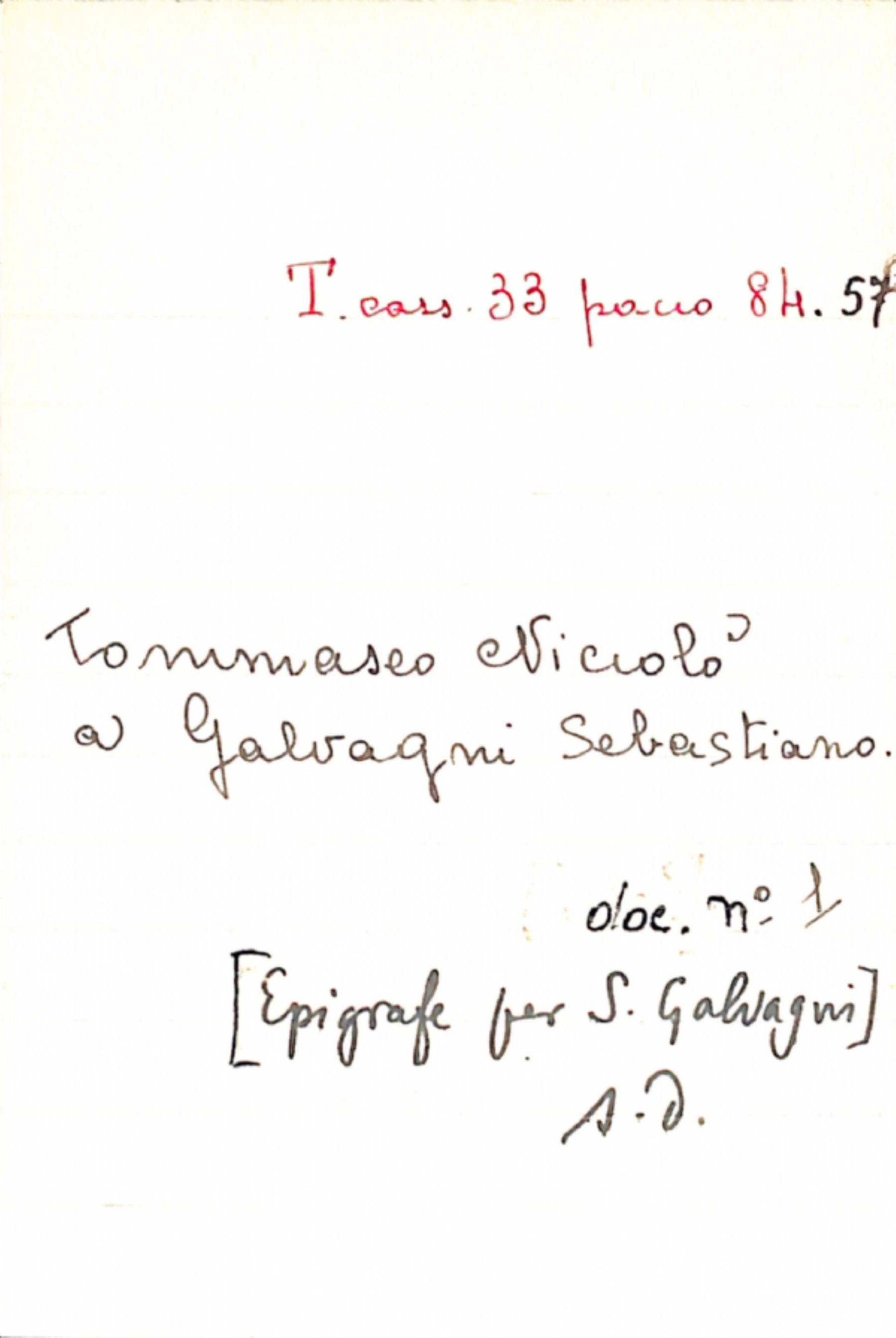 Fascicolo Tommaseo, Niccolò a Galvagni, Sebastiano