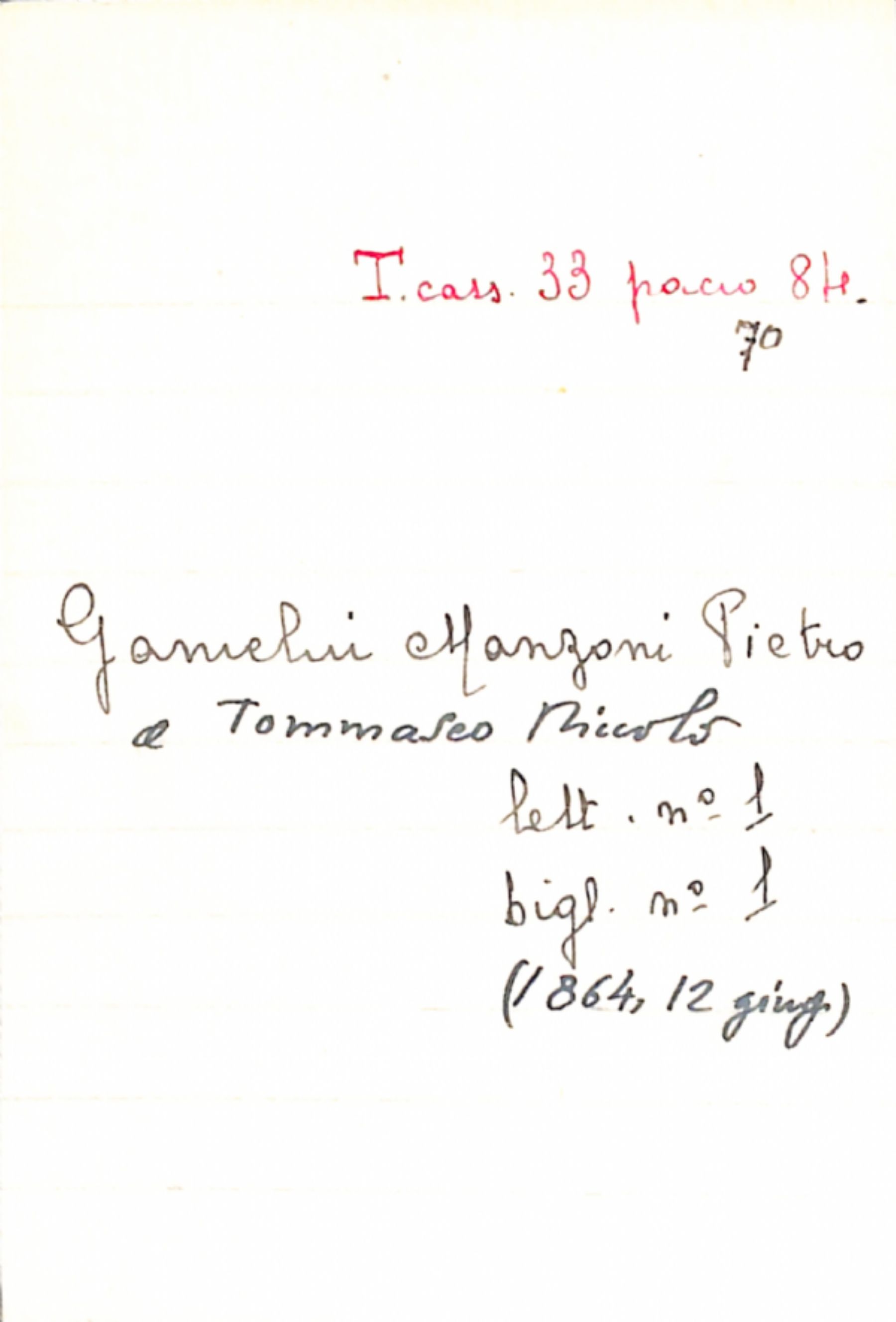 • Gamelin Manzoni, Pietro a Tommaseo, Niccolò