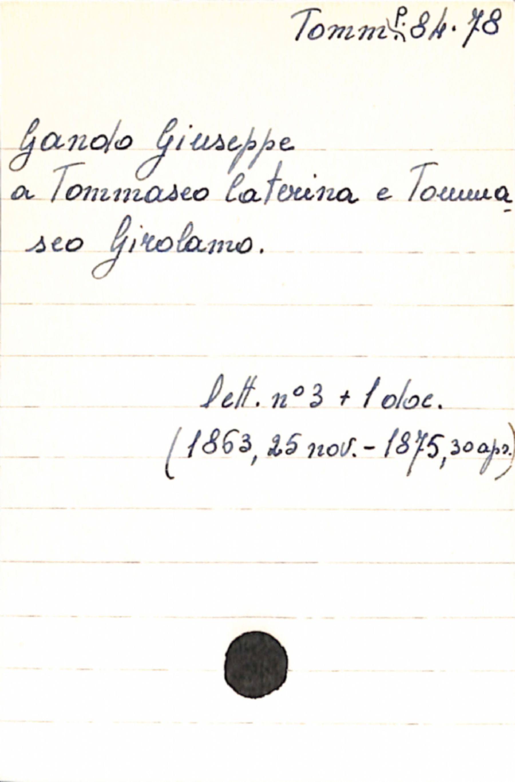 Fascicolo Gando, Giuseppe a Tommaseo, Caterina; Tommaseo, Girolamo
