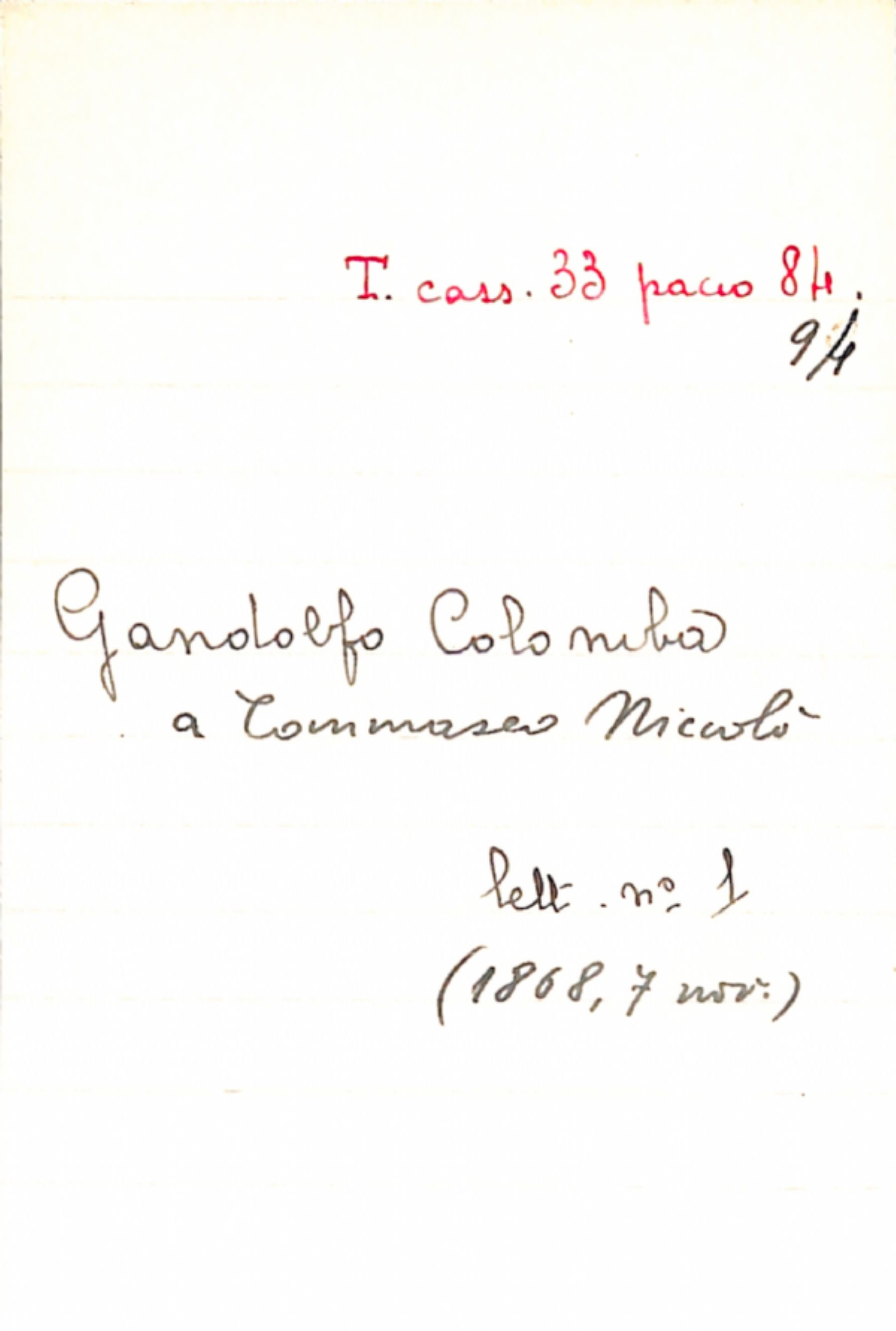 Fascicolo Gandolfo, Colomba a Tommaseo, Niccolò