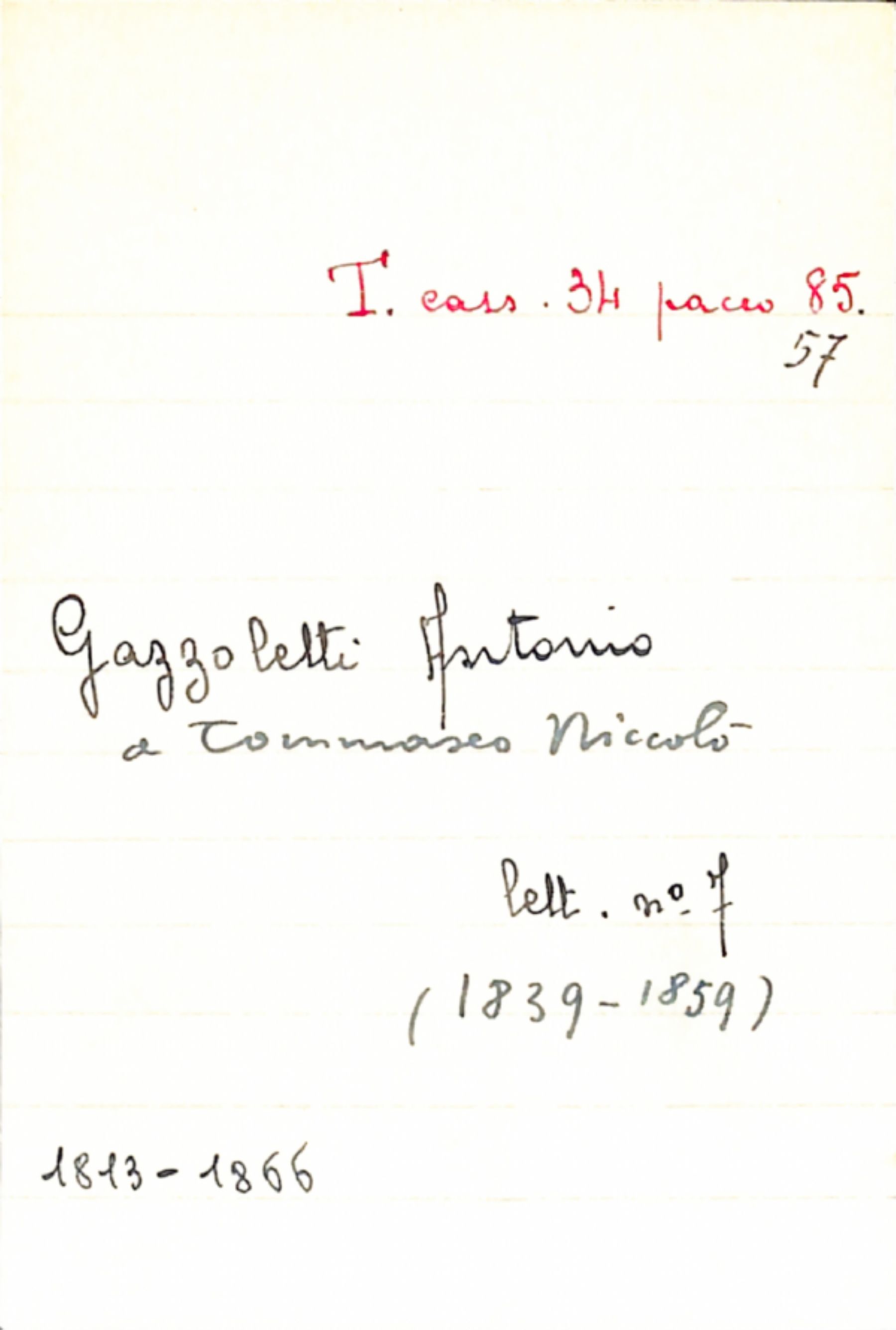 Fascicolo Gazzoletti, Antonio a Tommaseo, Niccolò