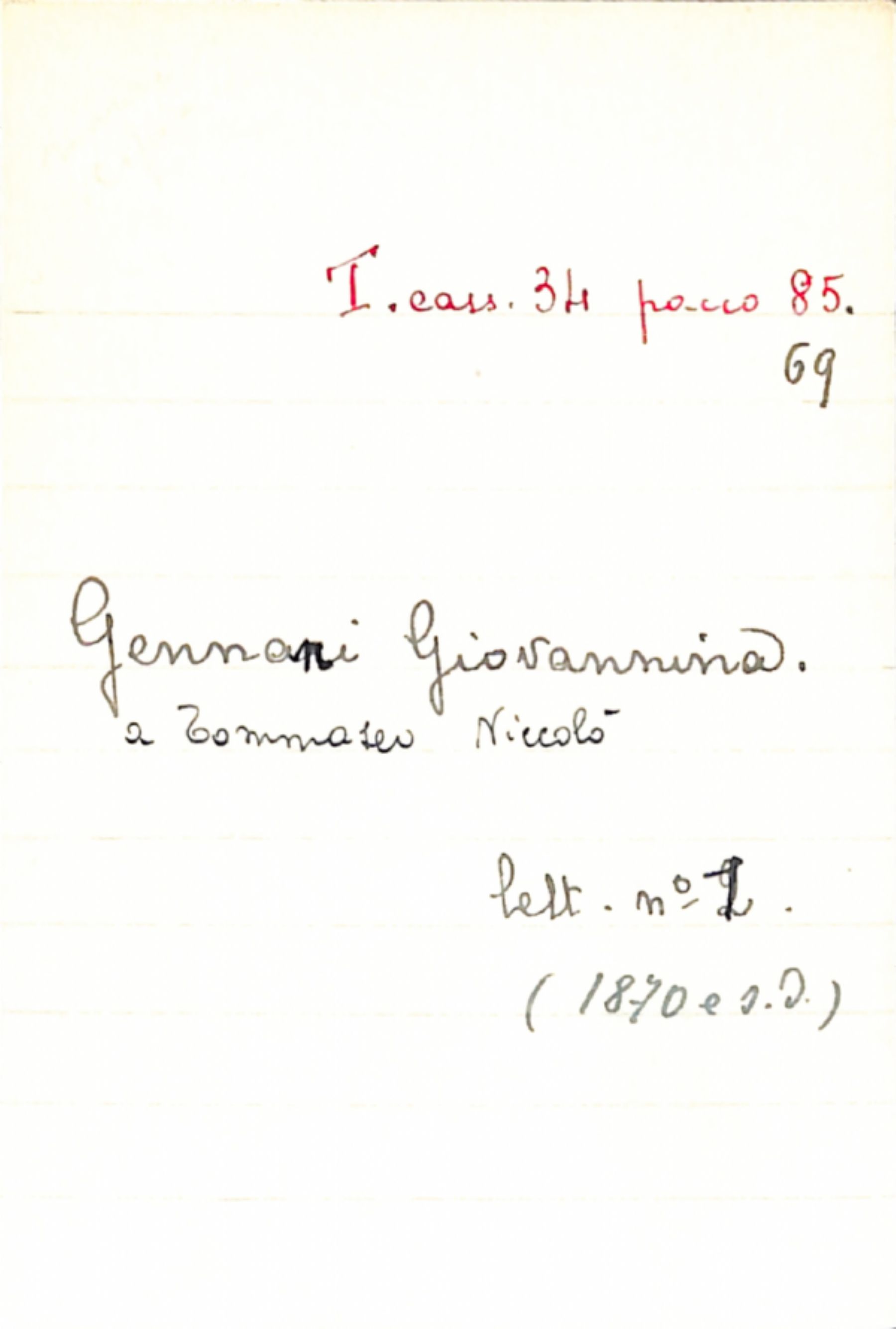 Fascicolo Gennani, Giovannina a Tommaseo, Niccolò