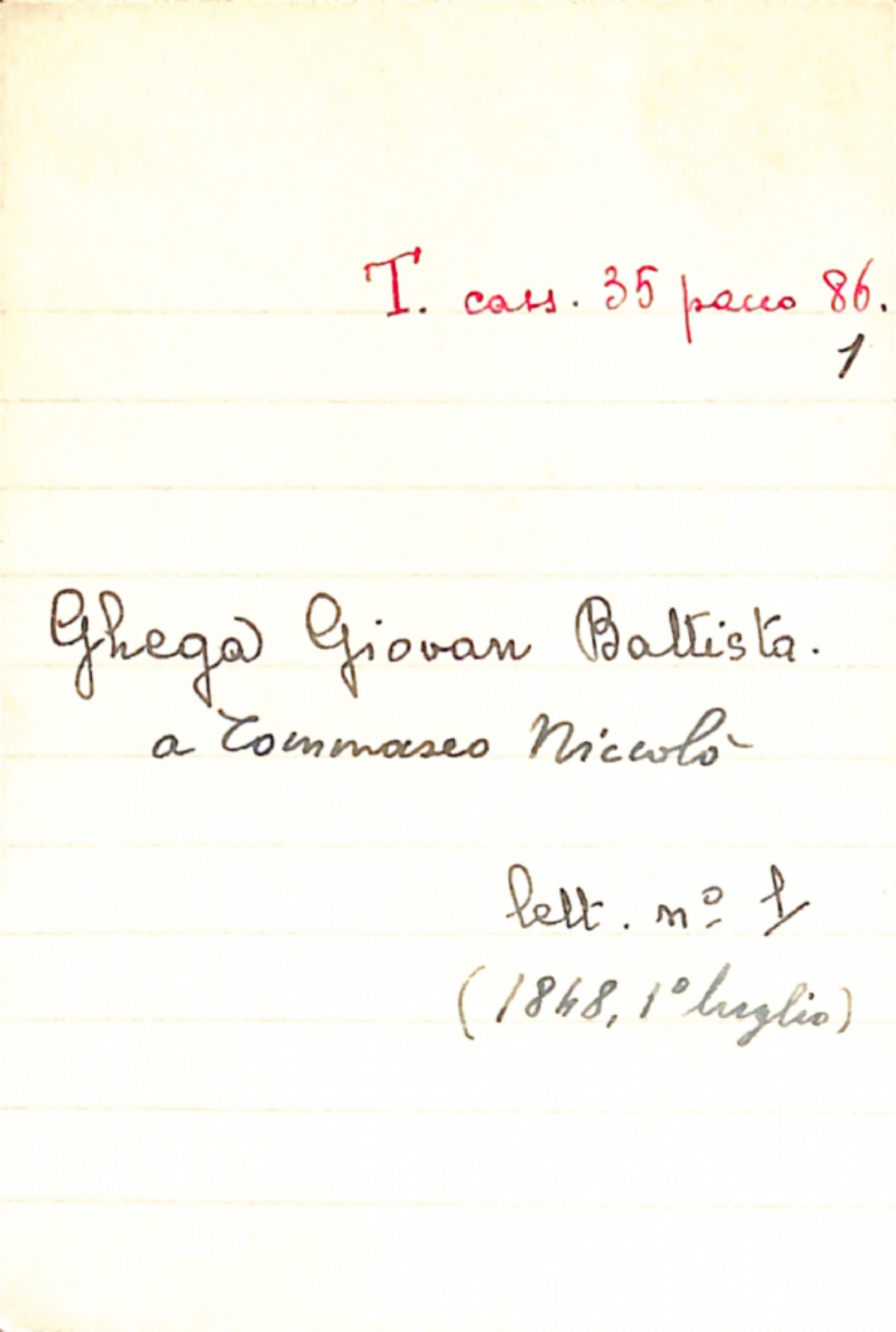 Fascicolo Ghega, Giovan Battista a Tommaseo, Niccolò