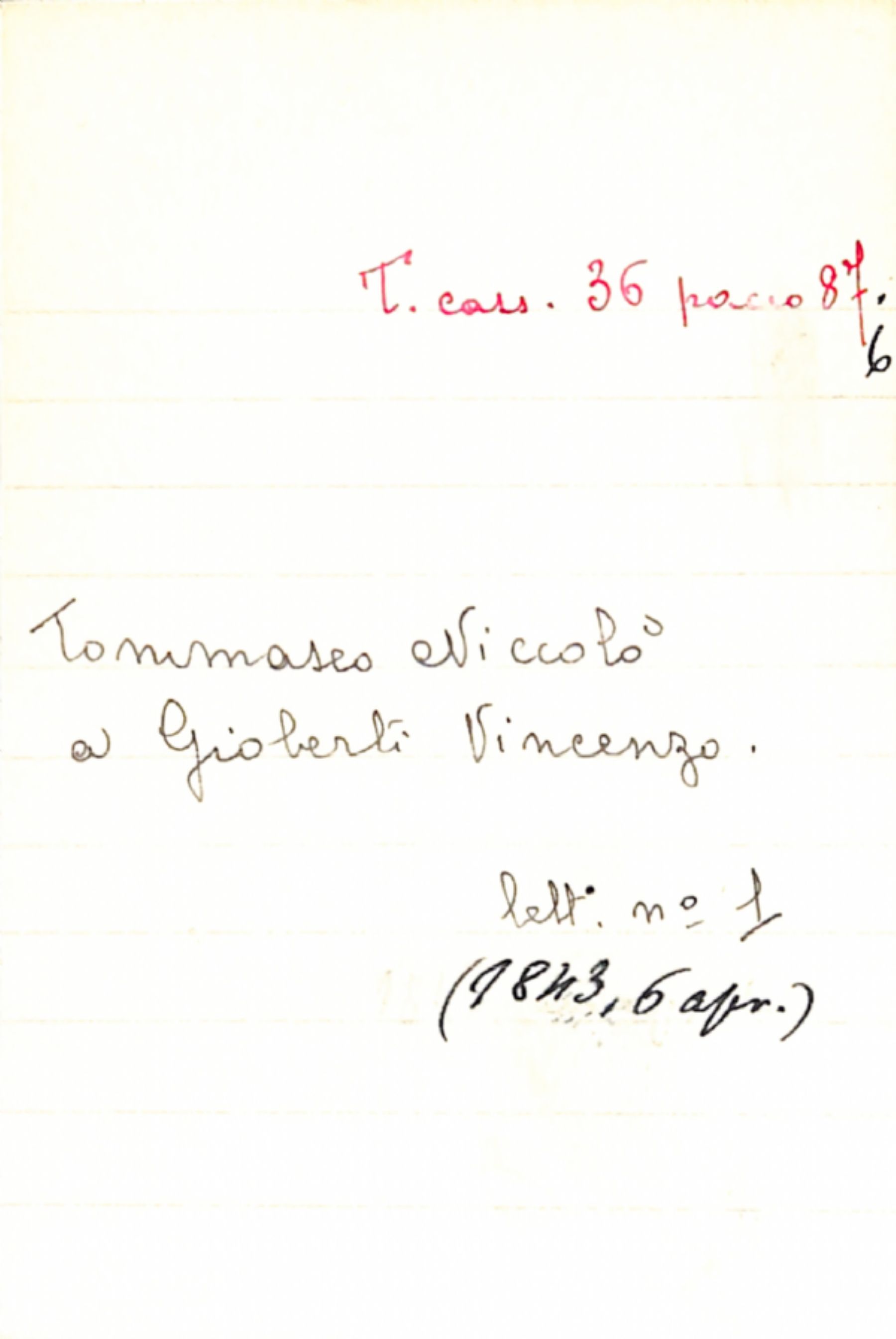 Fascicolo Tommaseo, Niccolò a Gioberti, Vincenzo