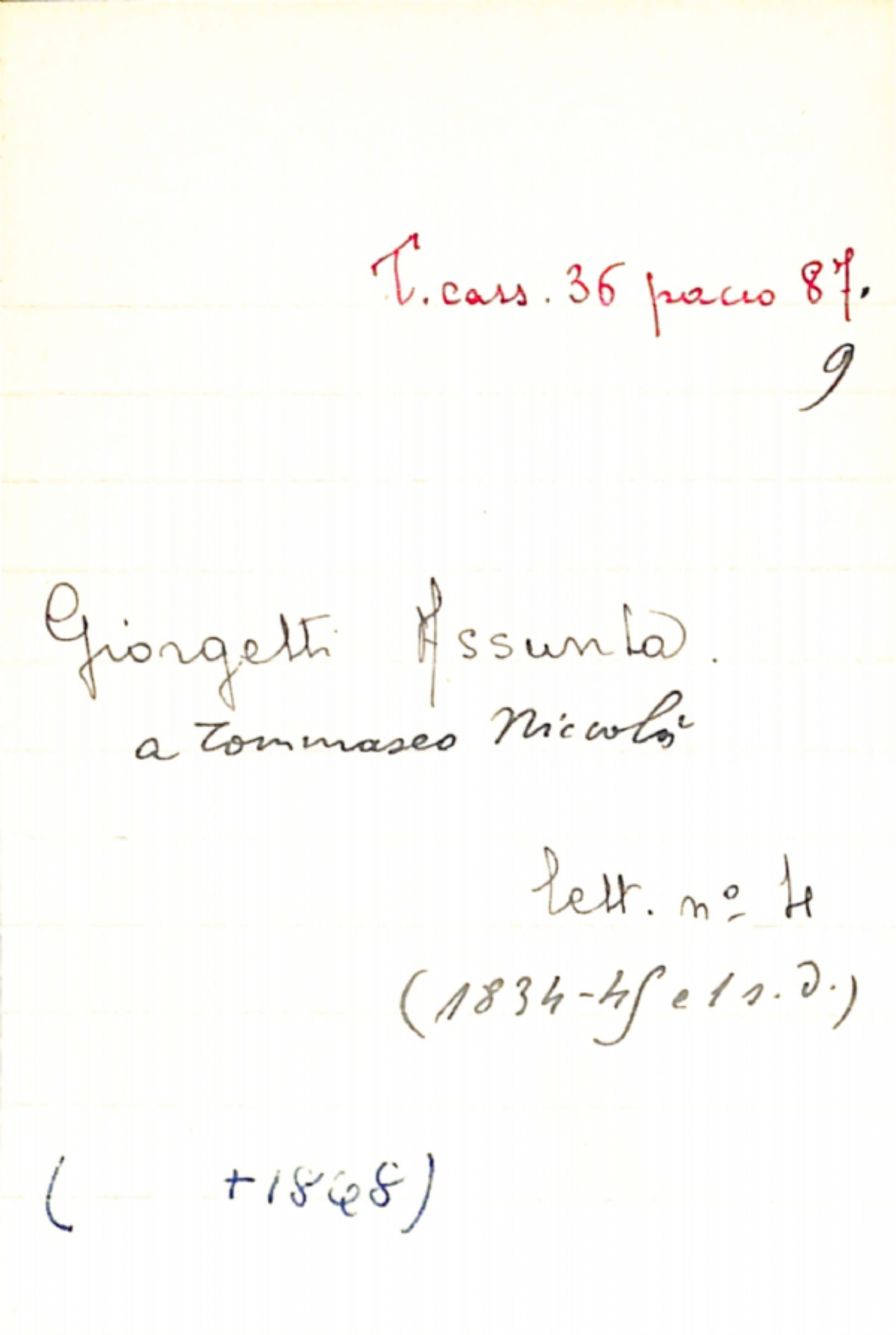 Fascicolo Giorgetti, Assunta a Tommaseo, Niccolò