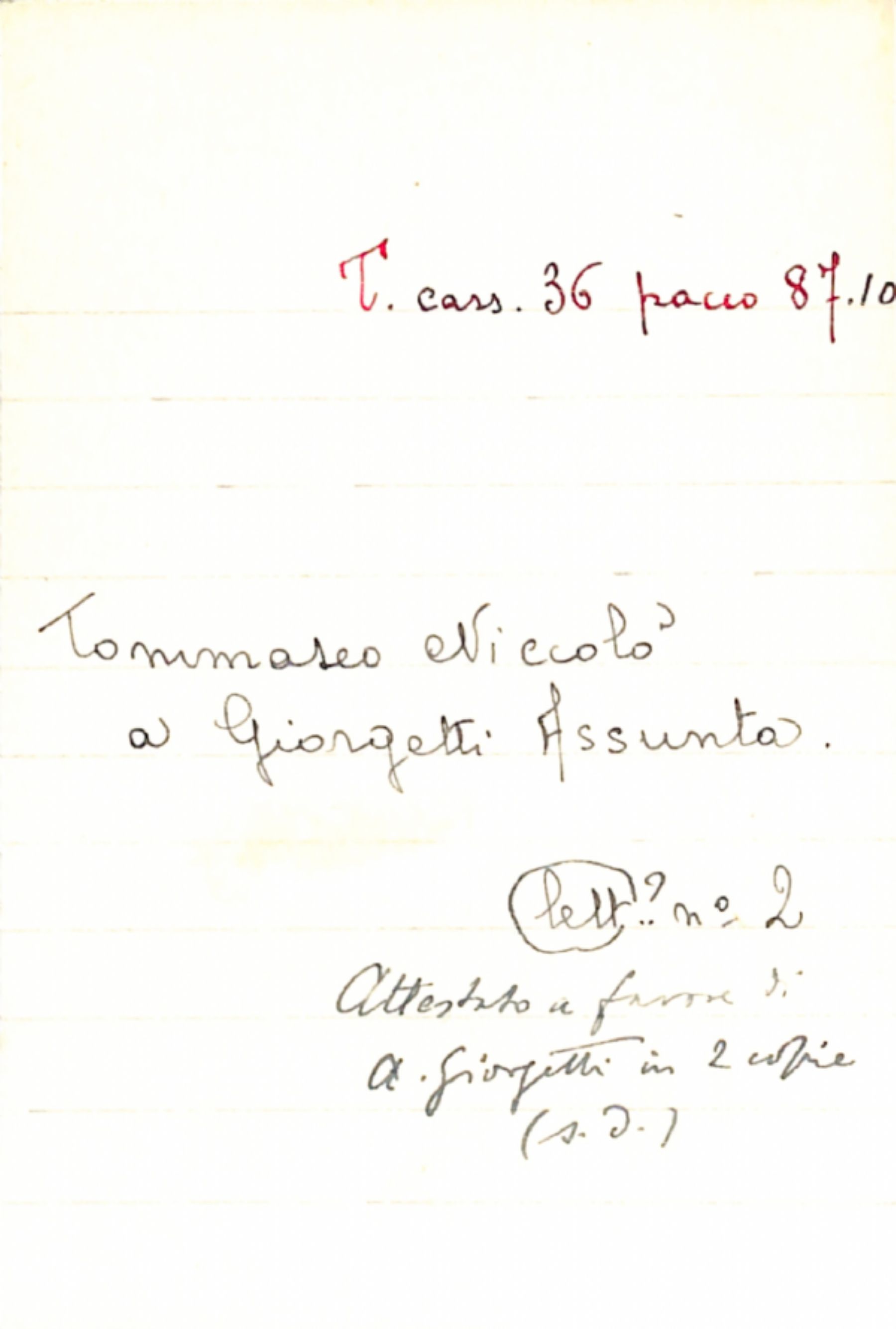 Fascicolo Tommaseo, Niccolò a Giorgetti, Assunta