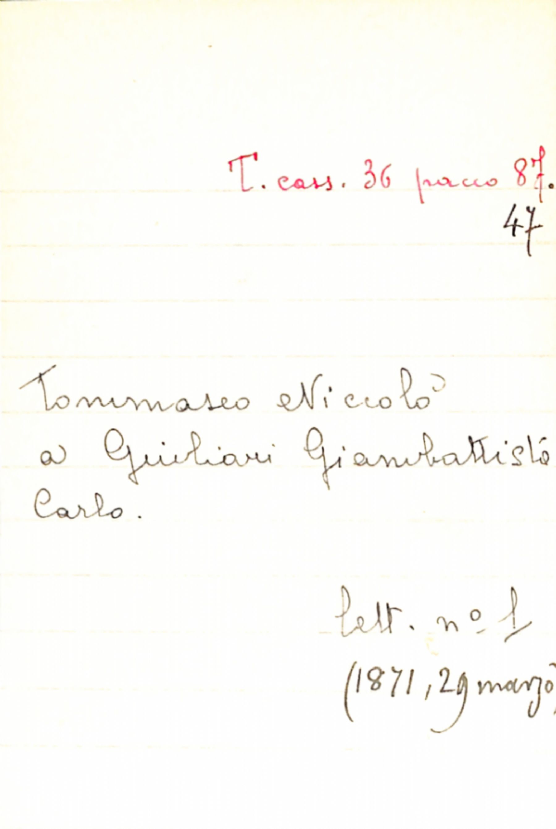 Fascicolo Tommaseo, Niccolò a Giuliari, Giambattista Carlo
