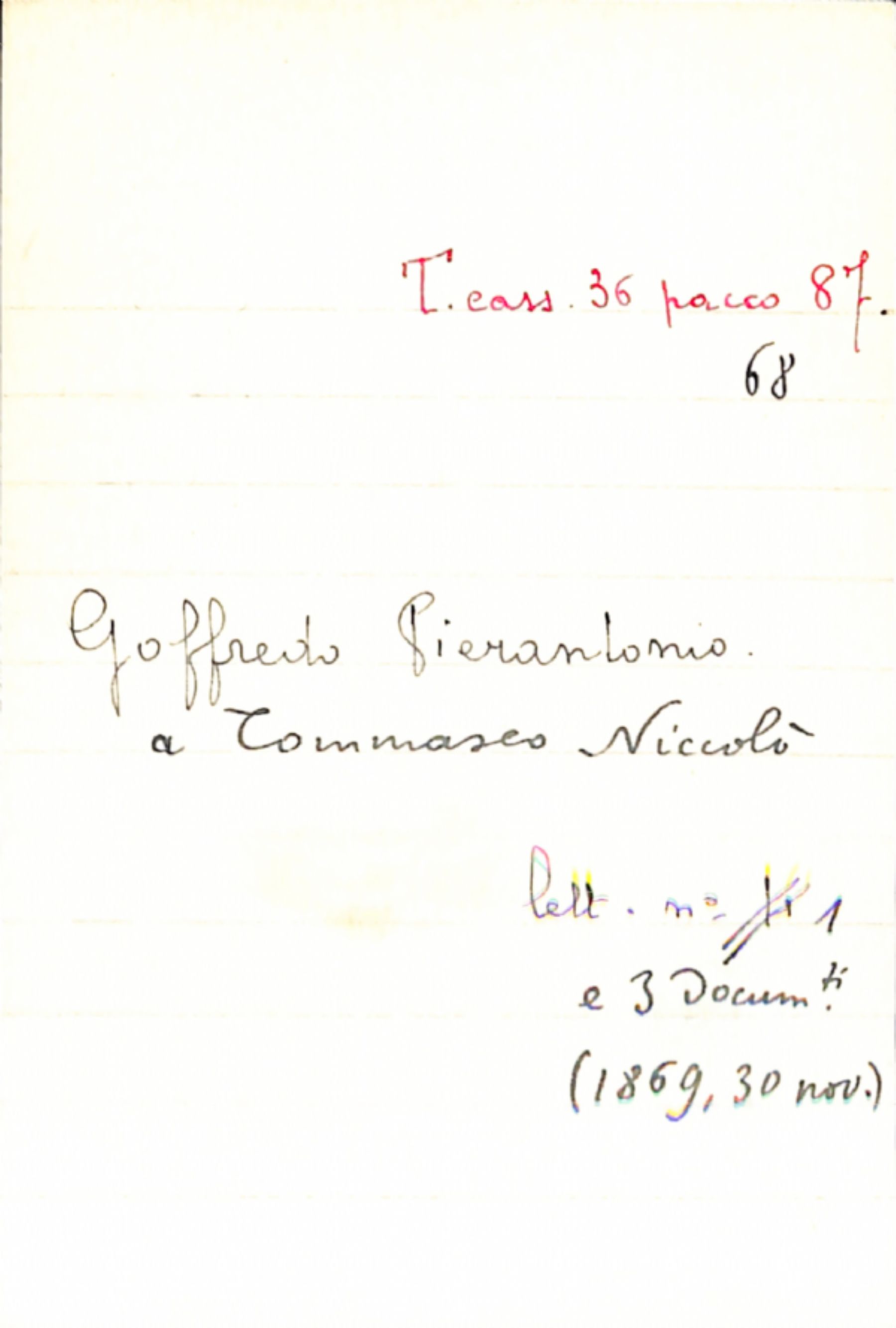 Fascicolo Pierantonio, Goffredo a Tommaseo, Niccolò