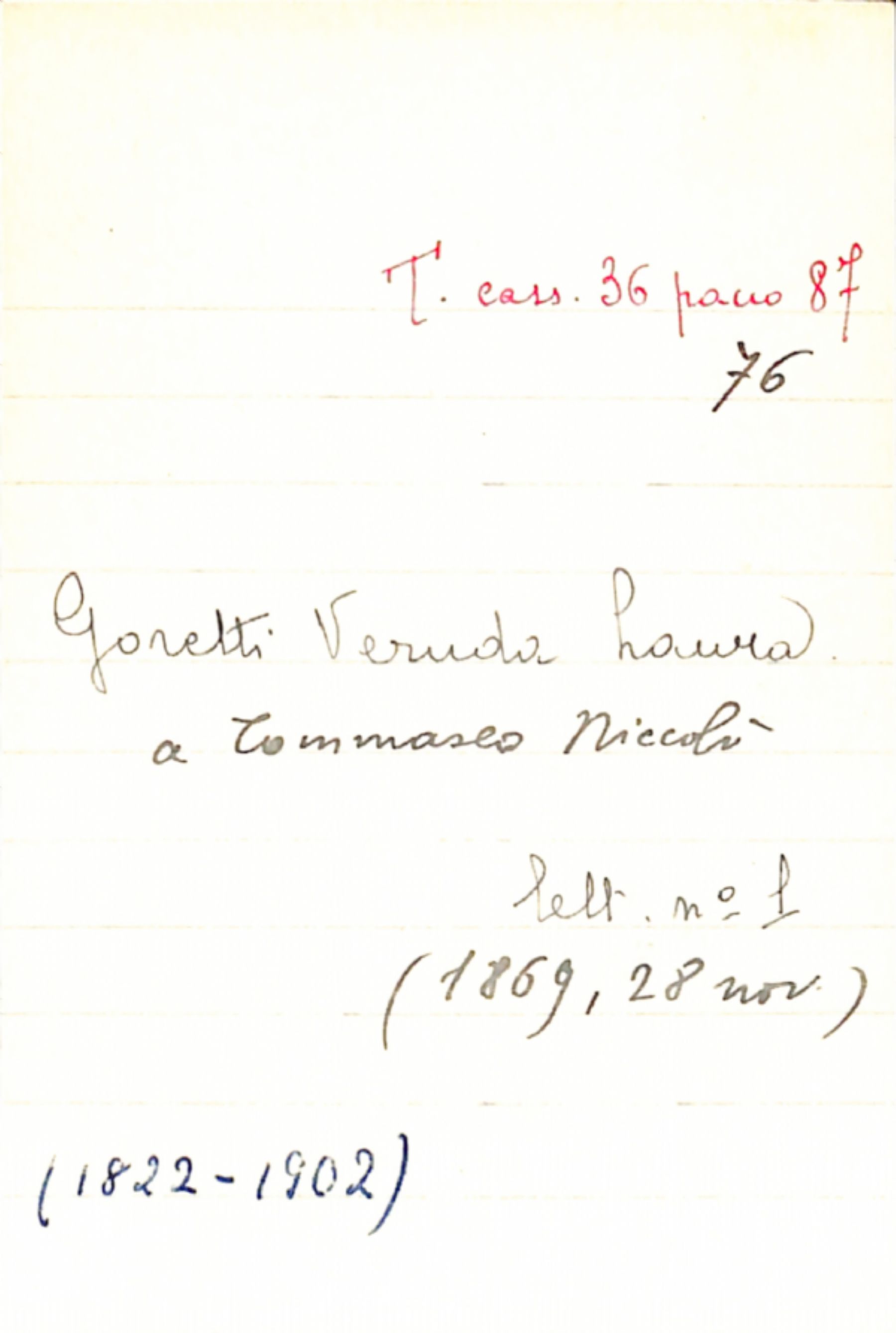 Fascicolo Gooretti Veruda, Laura a Tommaseo, Niccolò
