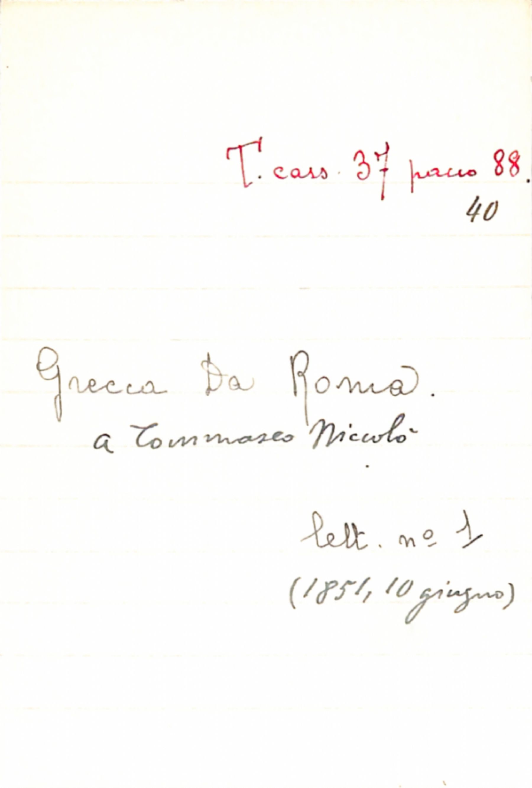 Fascicolo Grecca da Roma a Tommaseo, Niccolò