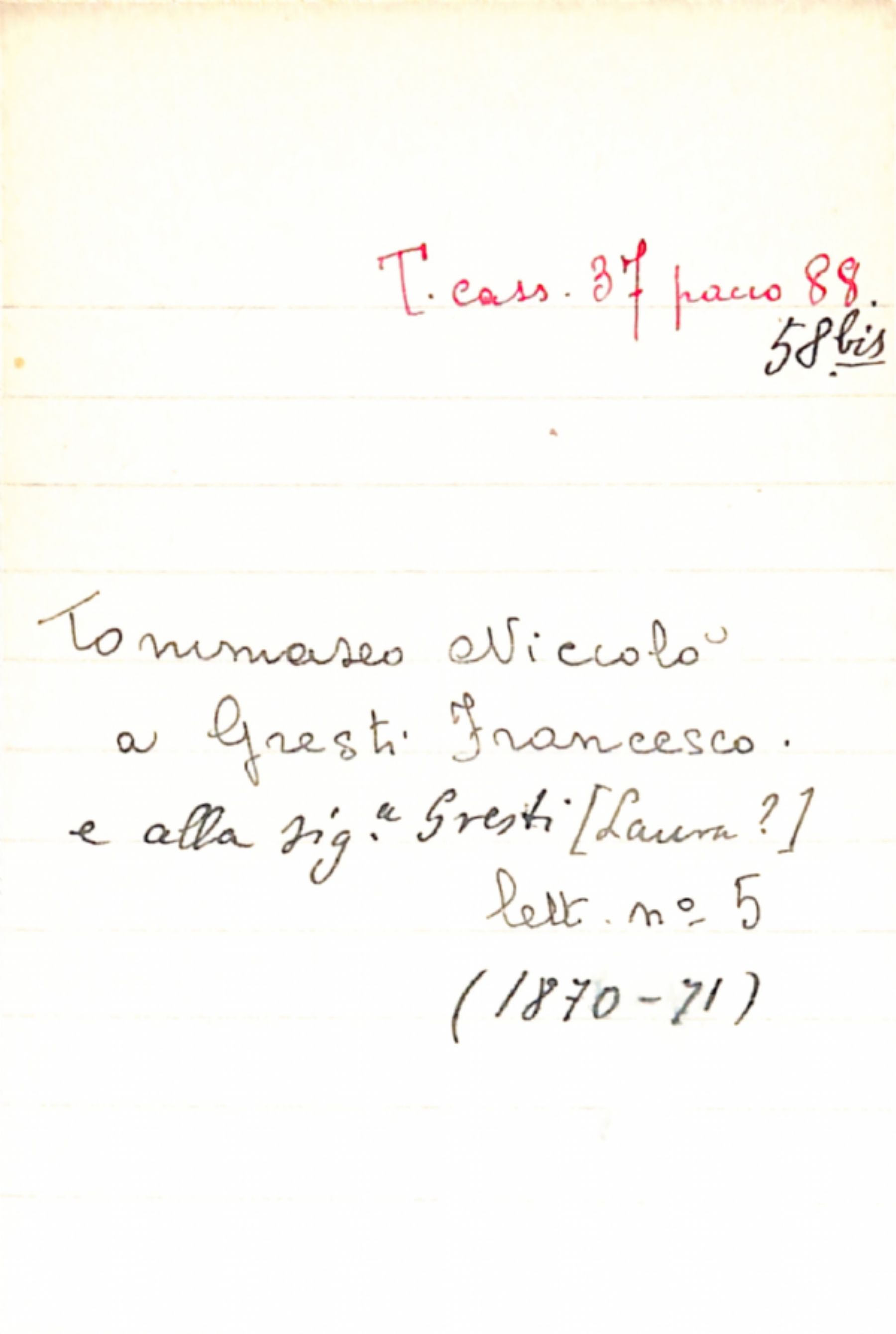 Fascicolo Tommaseo, Niccolò a Gresti, Francesco; Gresti, [Laura?]