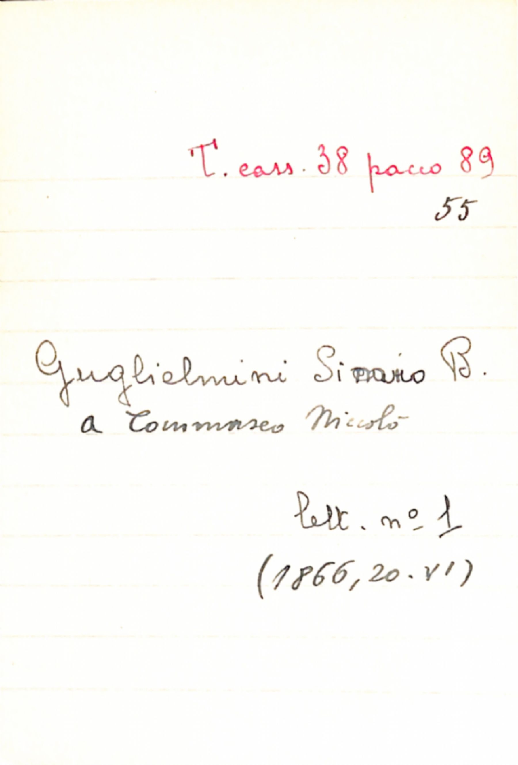 Fascicolo Guglielmini Sicuro, B. a Tommaseo, Niccolò