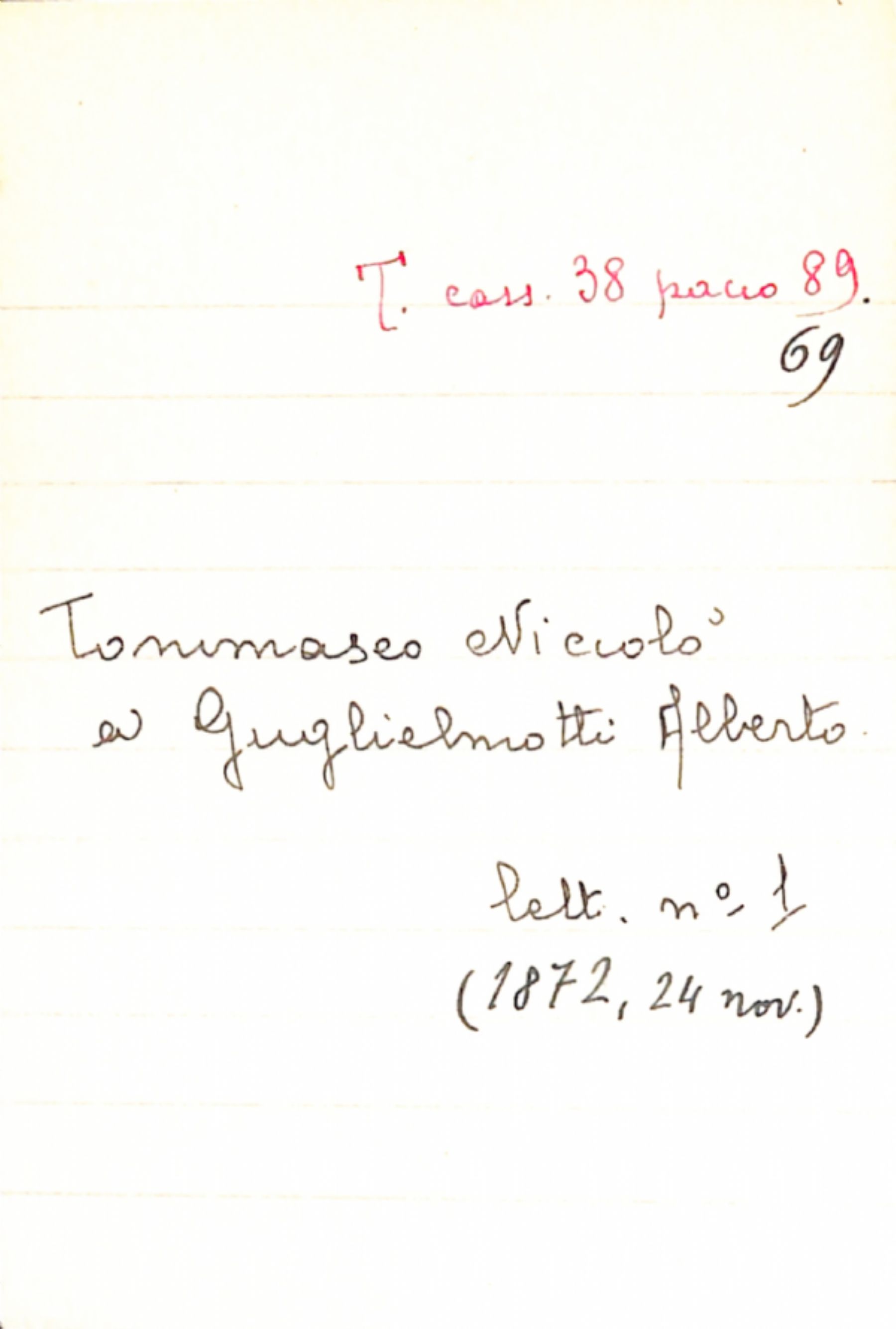 Fascicolo Tommaseo, Niccolò a Guglielmotti, Alberto