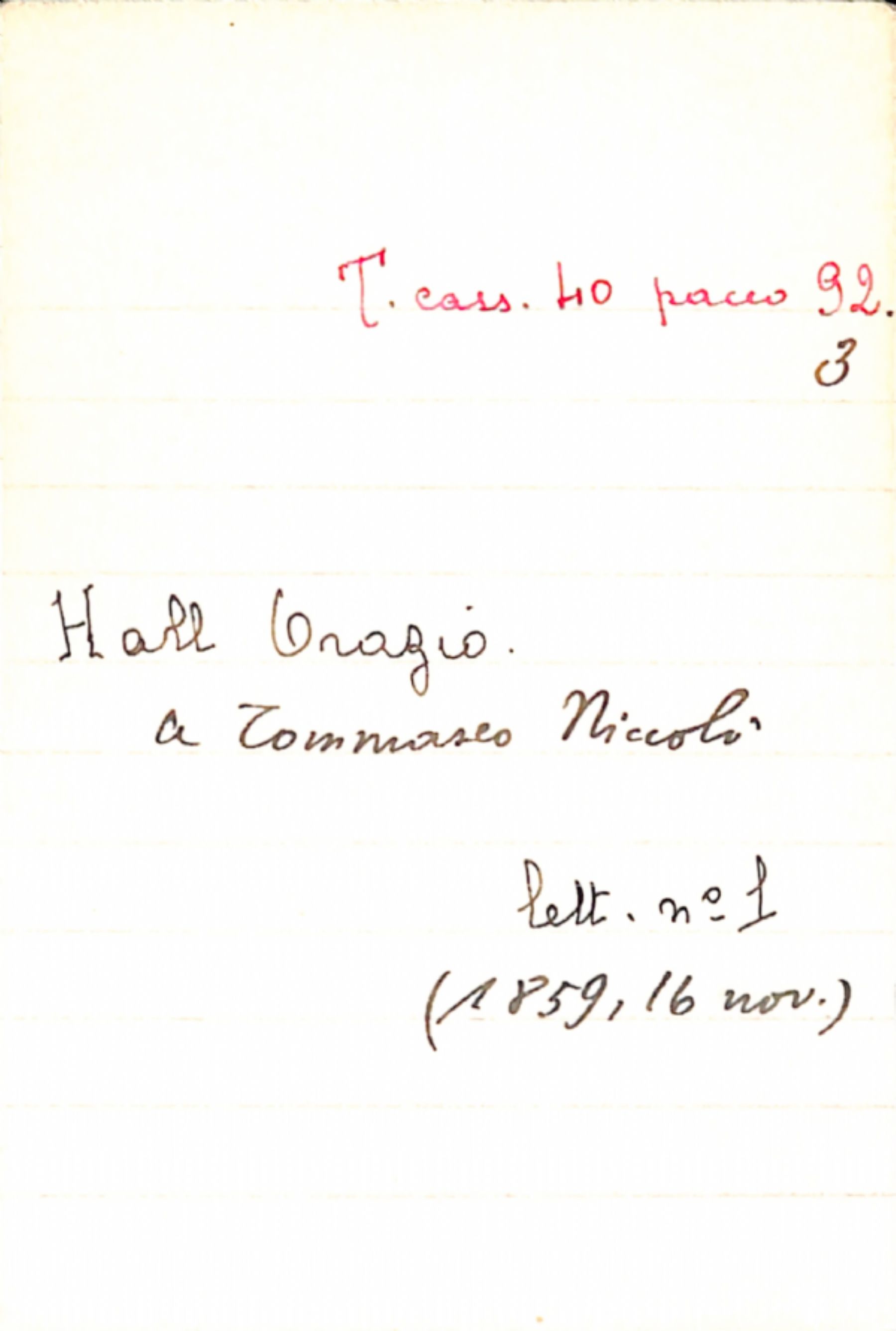 Fascicolo Hall, Orazio a Tommaseo, Niccolò