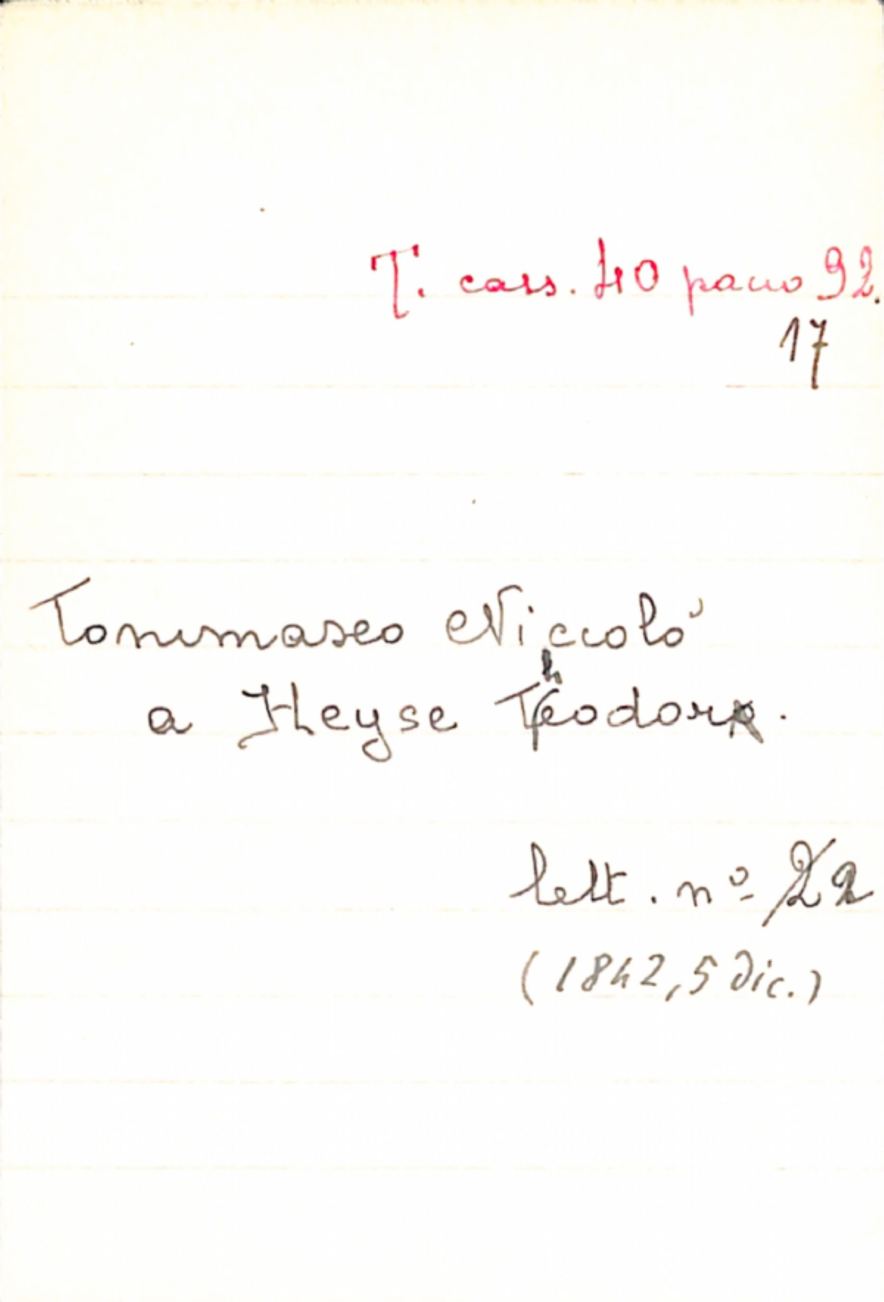 Fascicolo Tommaseo, Niccolò a Heyse, Theodor