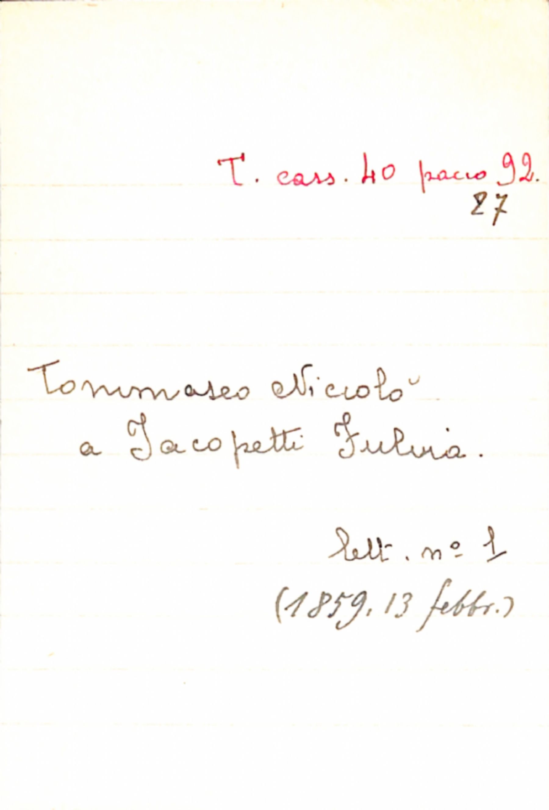 Fascicolo Tommaseo, Niccolò a Iacopetti, Fulvia