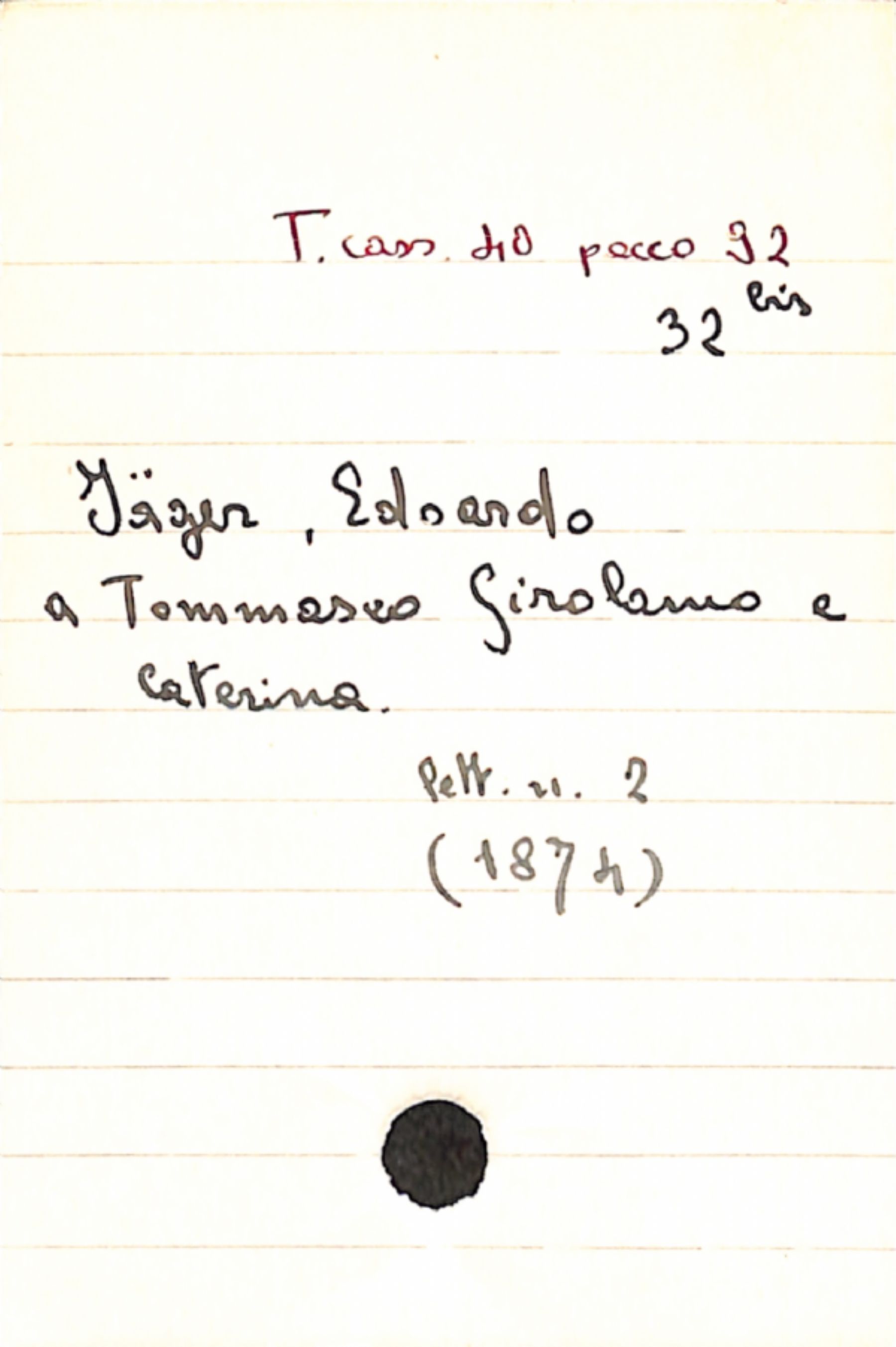 Fascicolo Jäger, Edoardo a Tommaseo, Girolamo; Tommaseo, Caterina