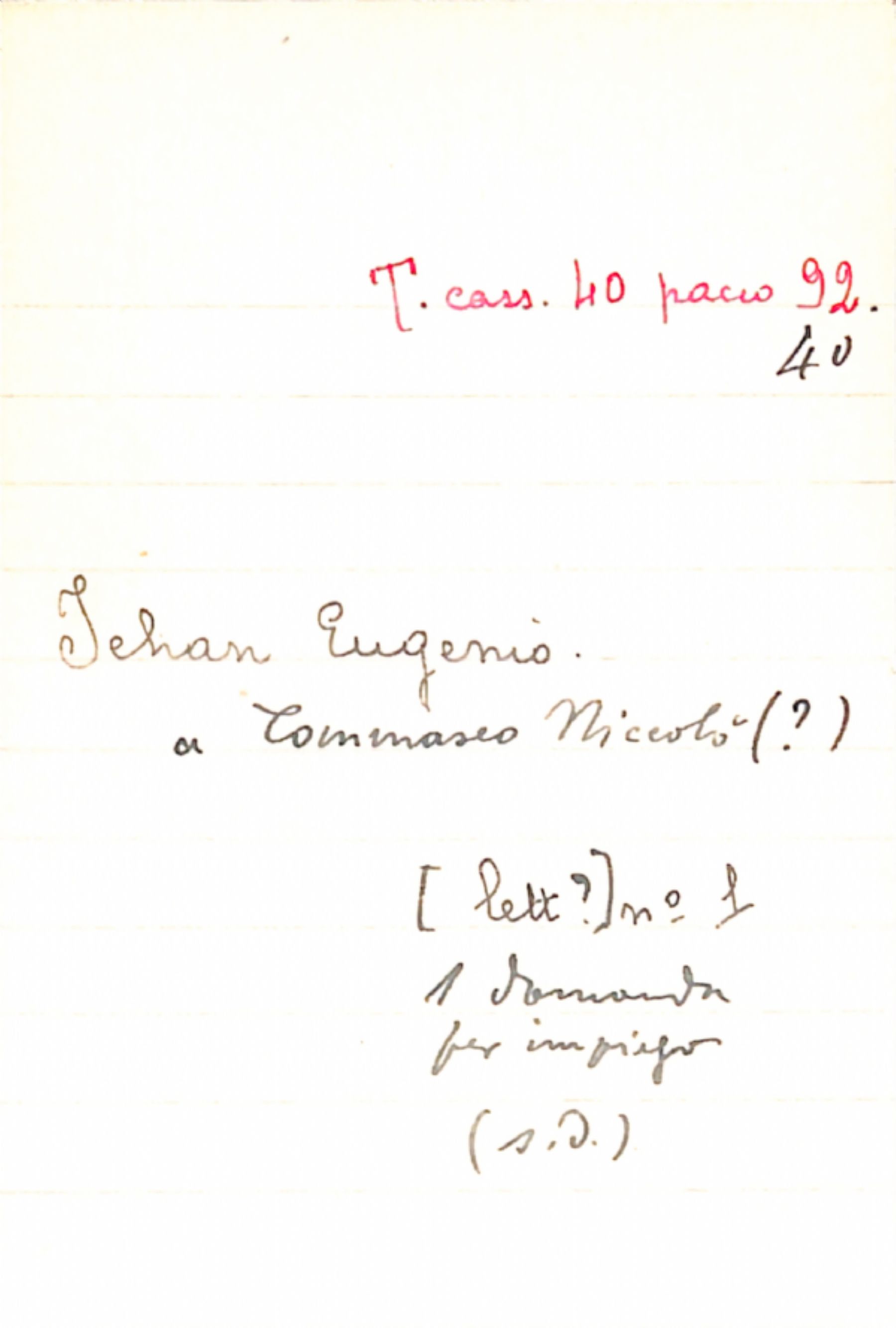 Fascicolo Iehan, Eugenio a Tommaseo, Niccolò (?)